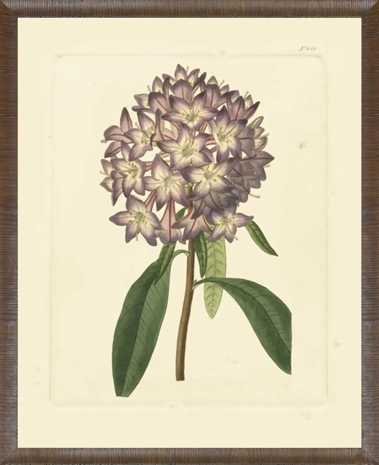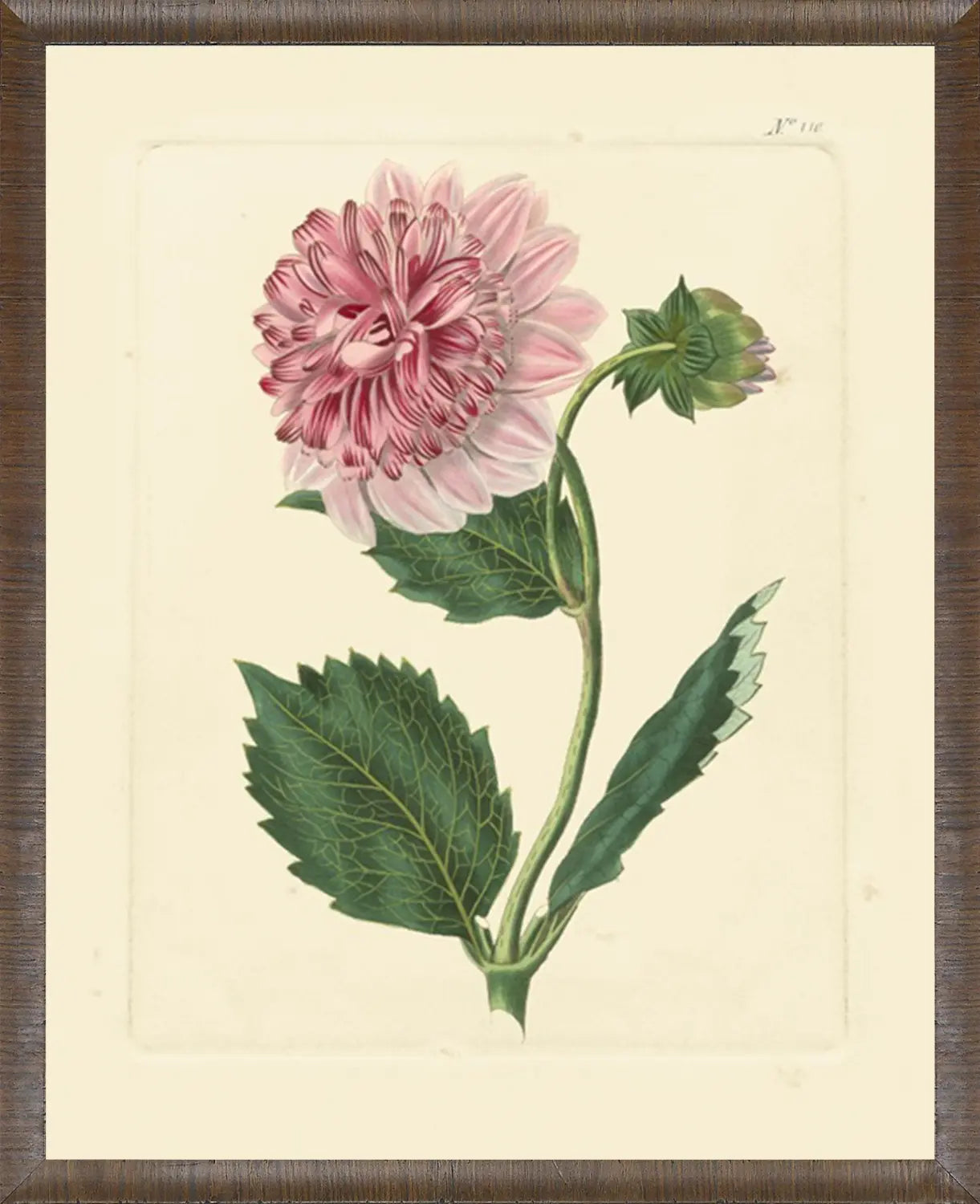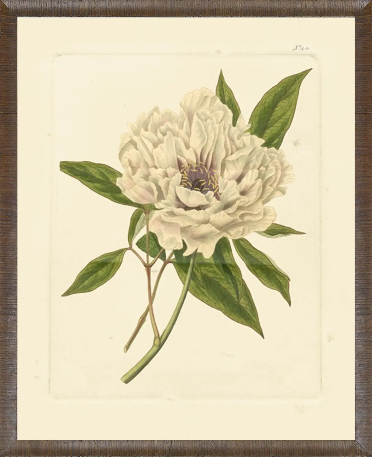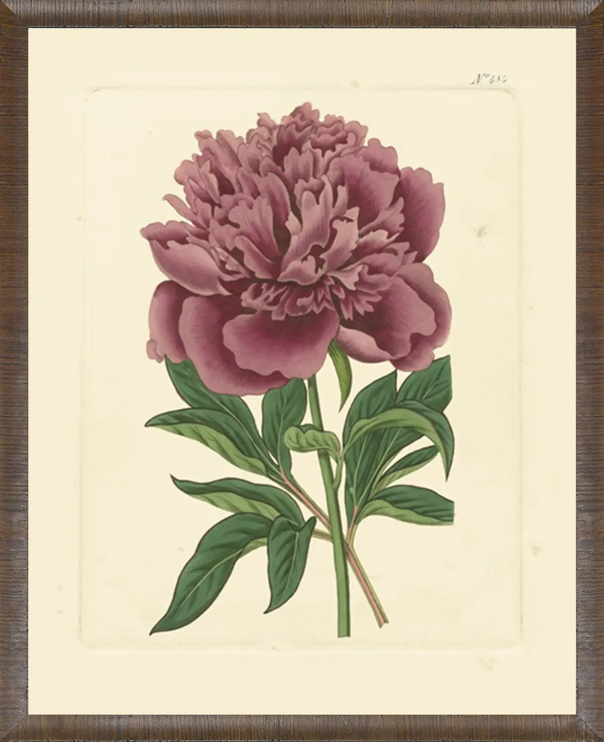 Classic Botanical prints on quality paper for a true historical look. Soft pink, mauve and white peonys, truly, the queen of the garden. Framed in a live edge wood frame.