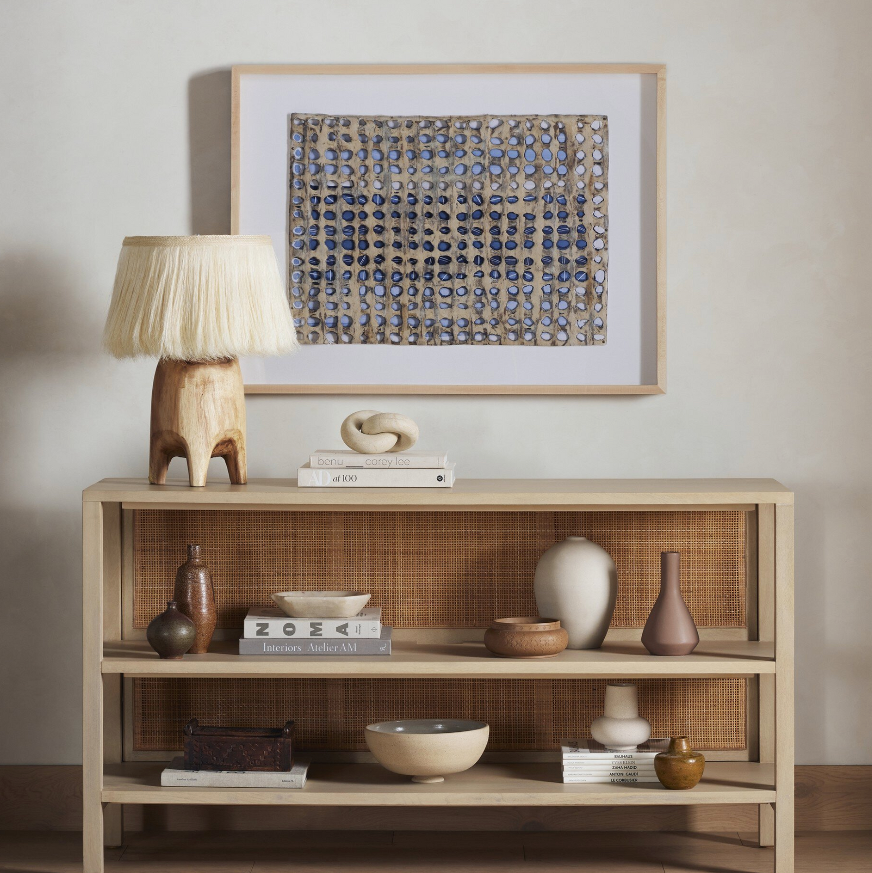An architectural colorist based in Santa Monica, California, artist Stef Bauer creates eclectic, ethereal pieces from mixed media to abstract paintings. Laser-cut canvas and matte paper with a spot gloss treatment for added dimension. Layered within thick maple for a gallery-quality look. If not currently in stock, this texture-enhanced piece ships within three weeks. Handmade in Austin, Texas.