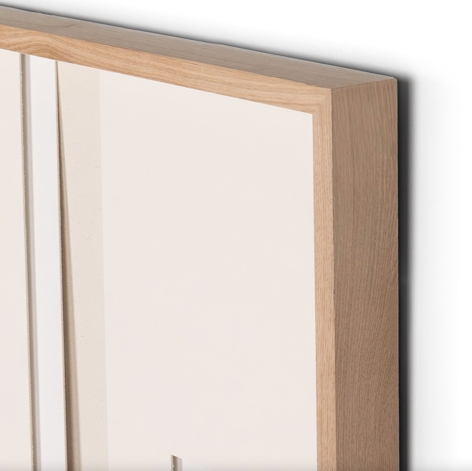 Linear cutouts from layered mat boards, by Bangkok-based art house Coup d'Esprit, framed within vertical white grain oak for a gallery-quality look. Handmade in Austin, Texas.