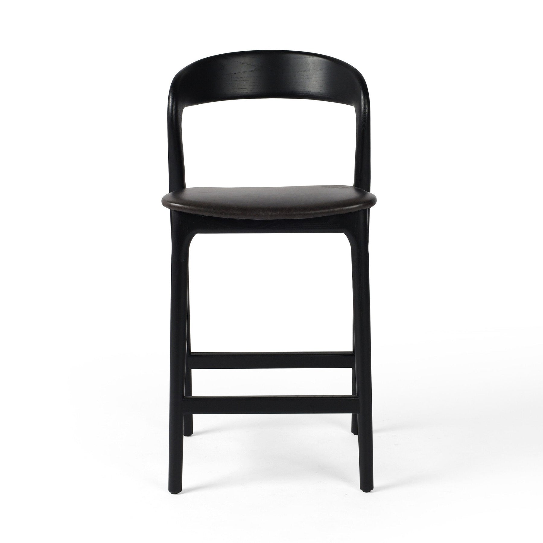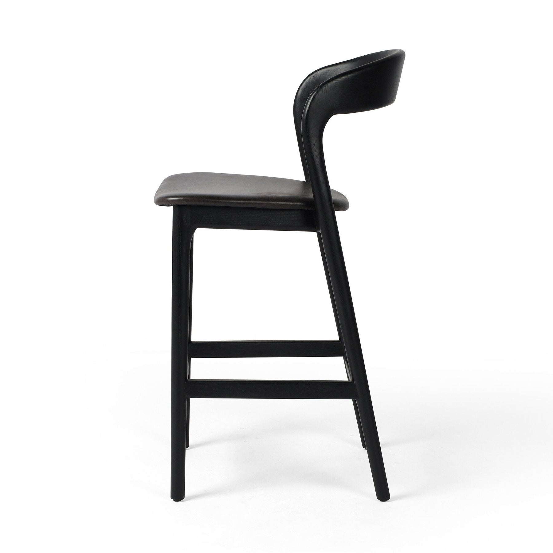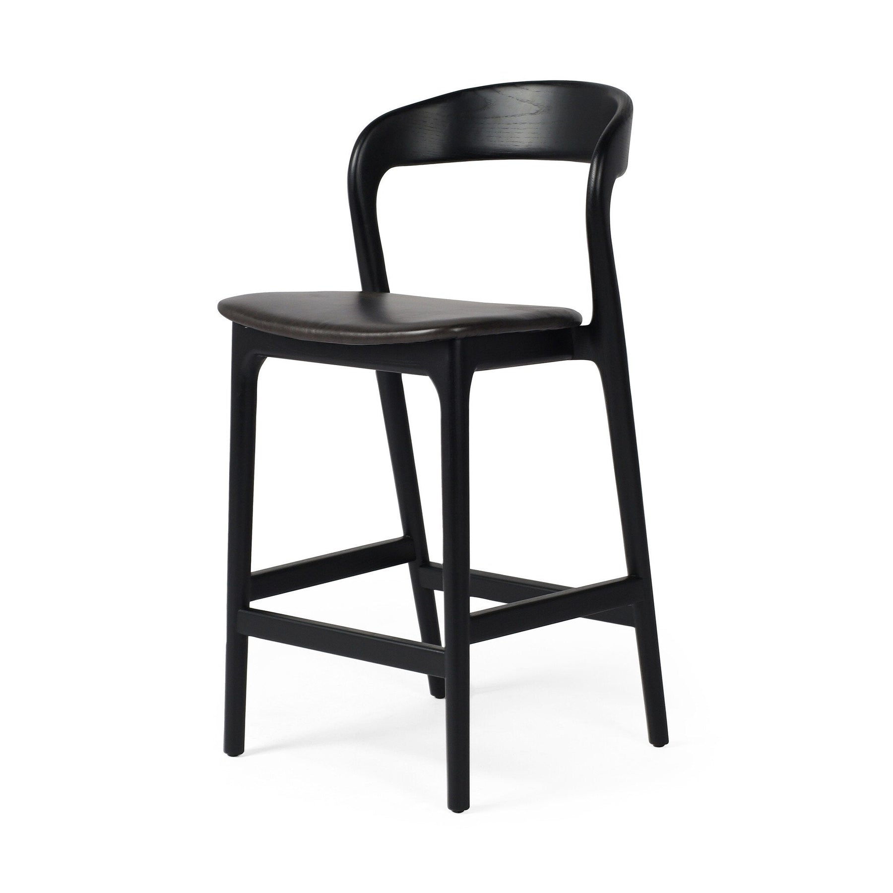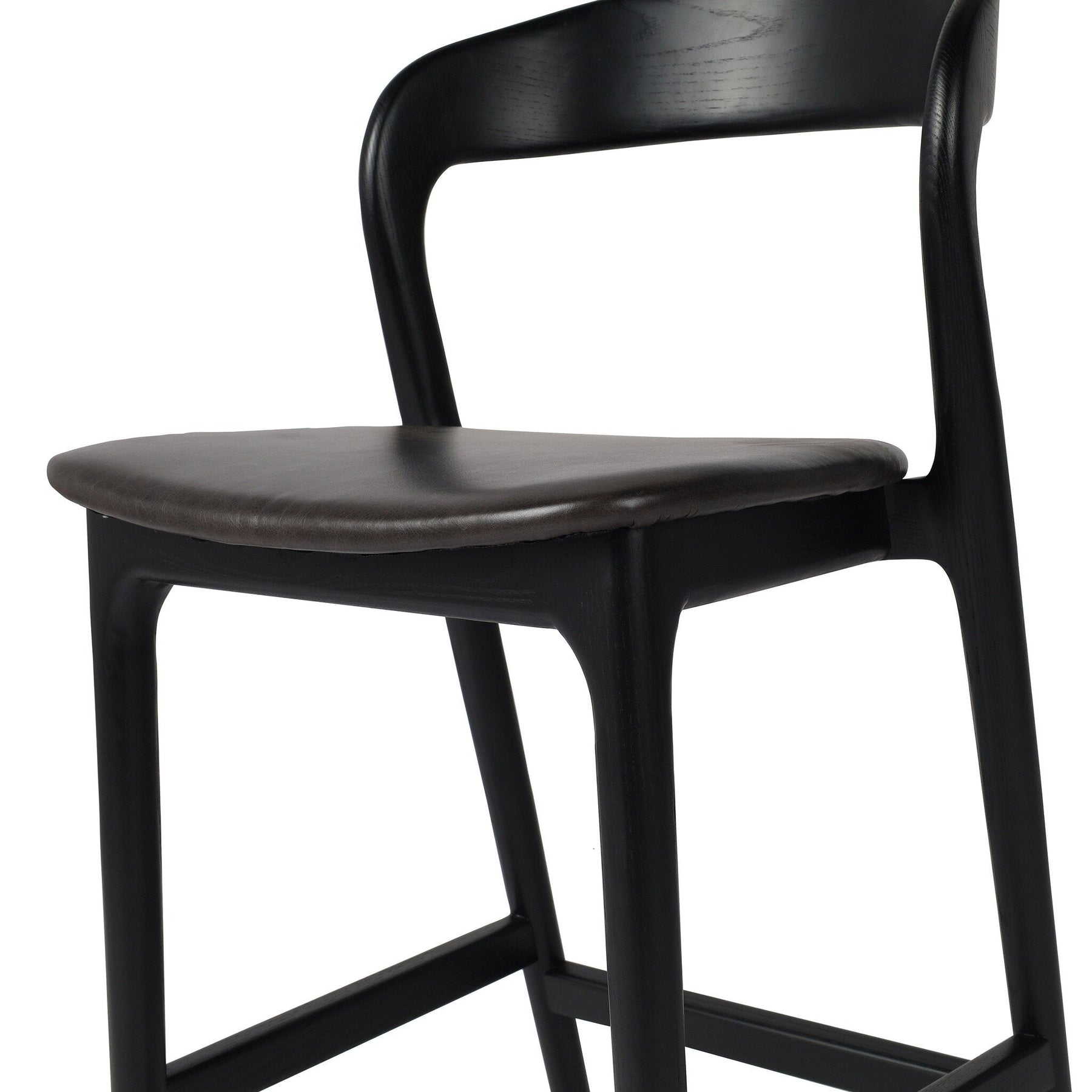 Modern monochrome, perfectly sized for the counter. Inspired by simple Scandinavian styling, black-finished solid ash forms a shapely open frame for black top-grain leather seating.