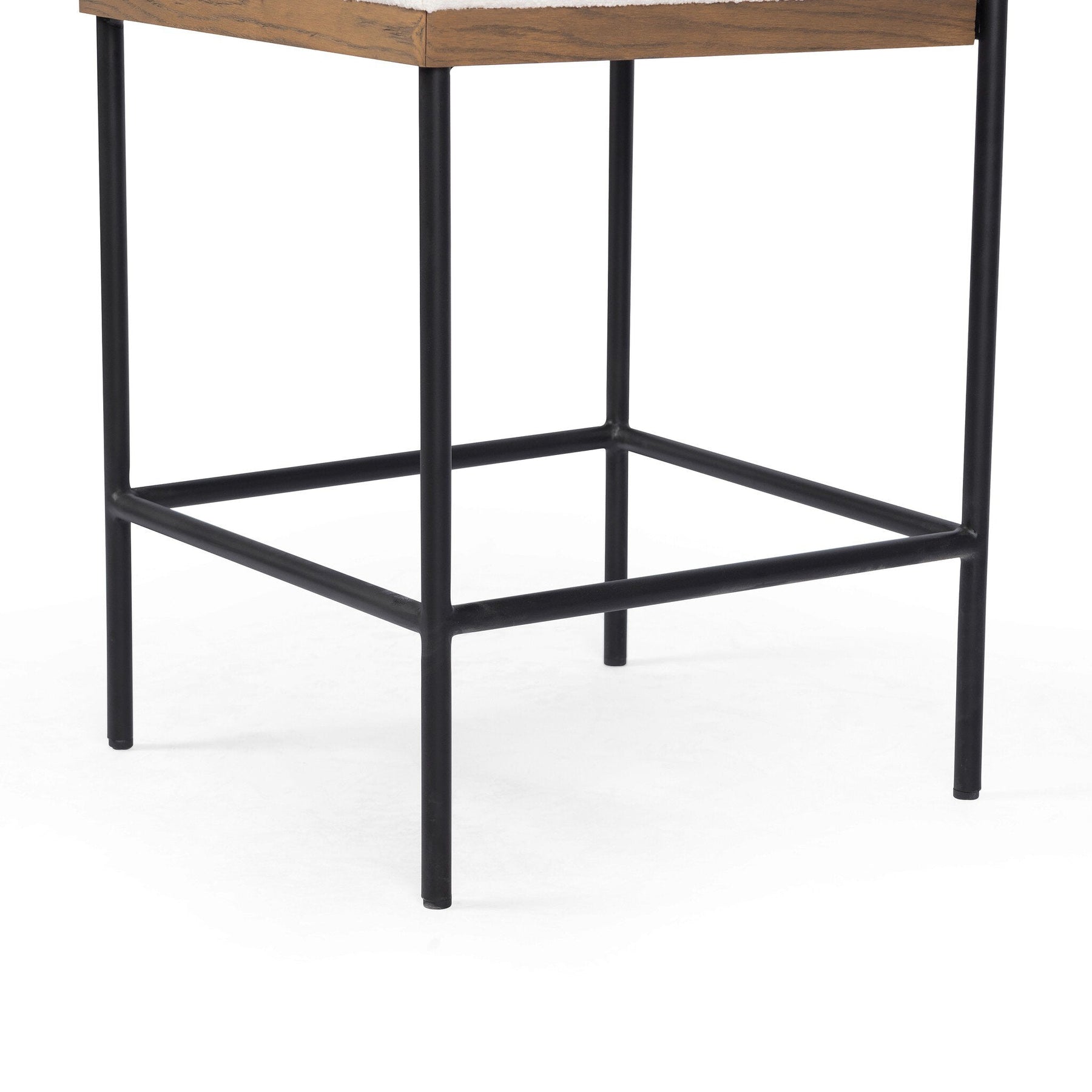 Bring a crisp, clean look to the counter. Slim, black-finished iron forms an airy frame for pristinely tailored performance fabric, with solid oak decking for an eye-catching material mix. Performance fabrics are specially created to withstand spills, stains, high traffic and wear, ensuring long-term comfort and unmatched durability.