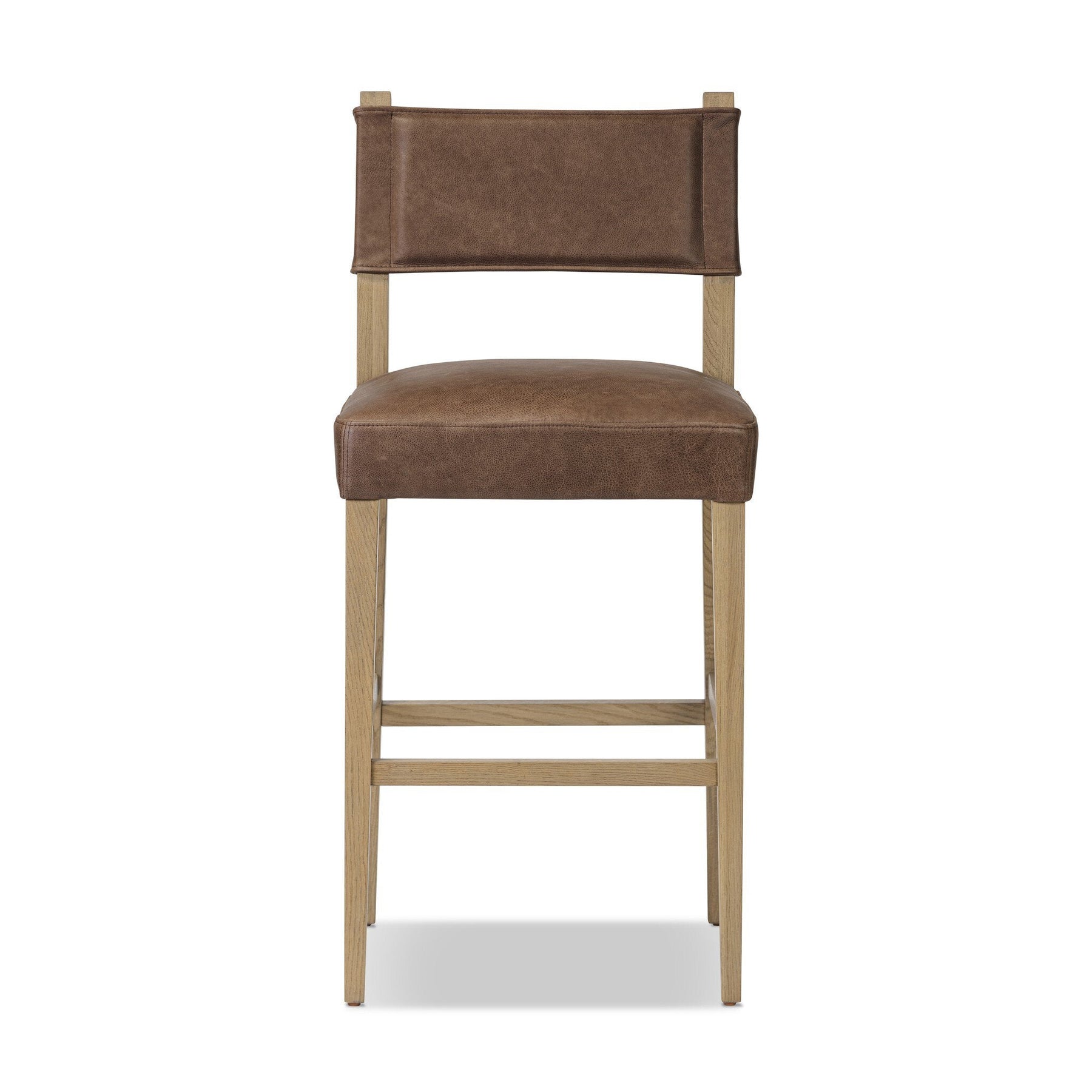 Perfectly sized for the bar, light oak frames lightly waxed, top-grain leather backing and seating.
