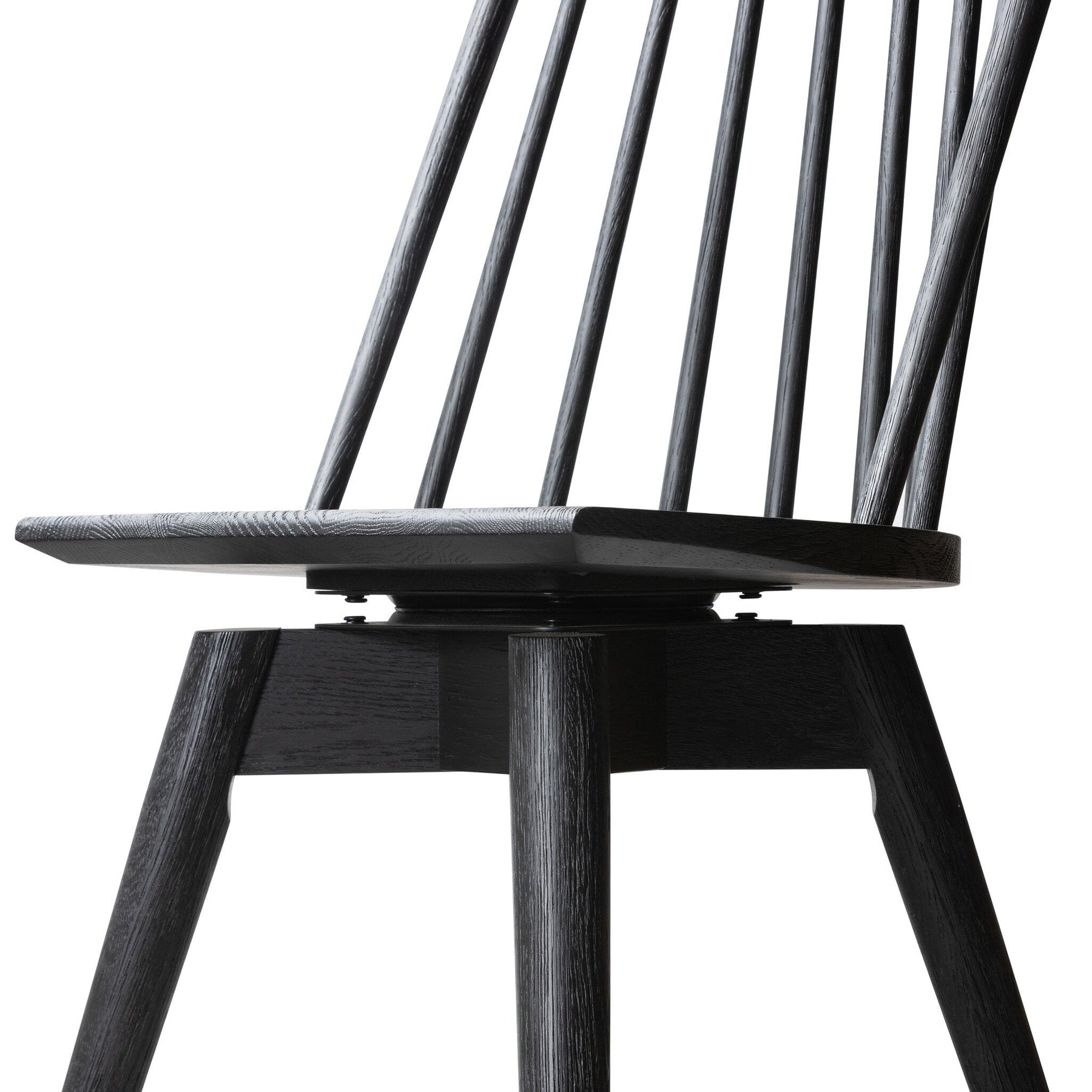 A new take on the traditional Windsor. This tall beauty is wire-brushed to highlight the cathedral grain of black oak. Perfectly sized for the counter, with a 360-degree swivel for ease and comfort.