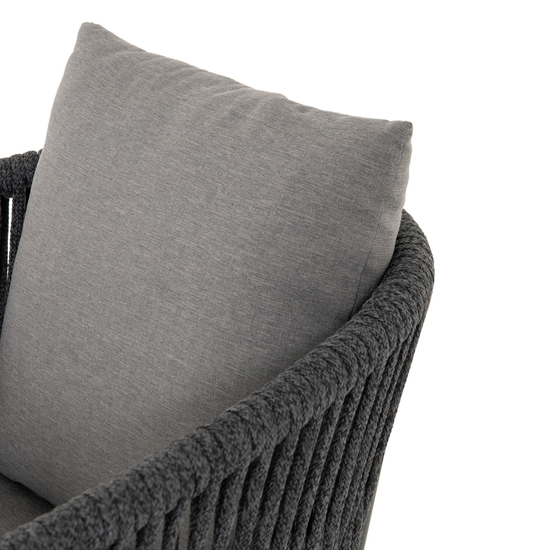 The perfect place for outdoor daydreaming. A beautiful rope-based design is woven across a durable aluminum frame in a rich bronze finish. Topped with a wide cushion and throw pillows, all upholstered in 100% olefin, known for its UV-resistant, water-repellent and quick-drying abilities