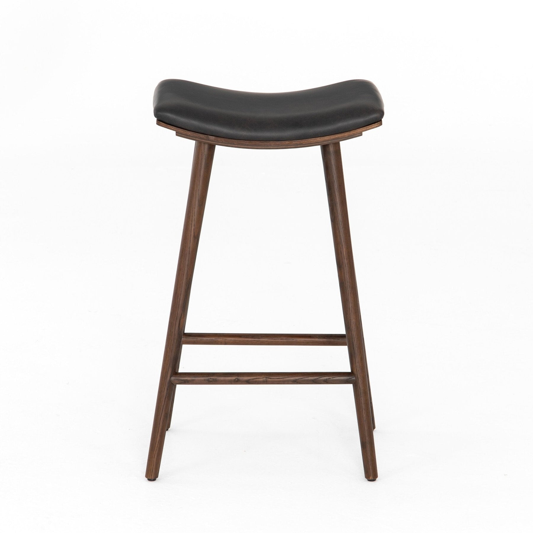 Slim styling meets color contrast for effortless impact. Warm ash framing supports a saddle-style seat of distressed black faux leather. 30" H.