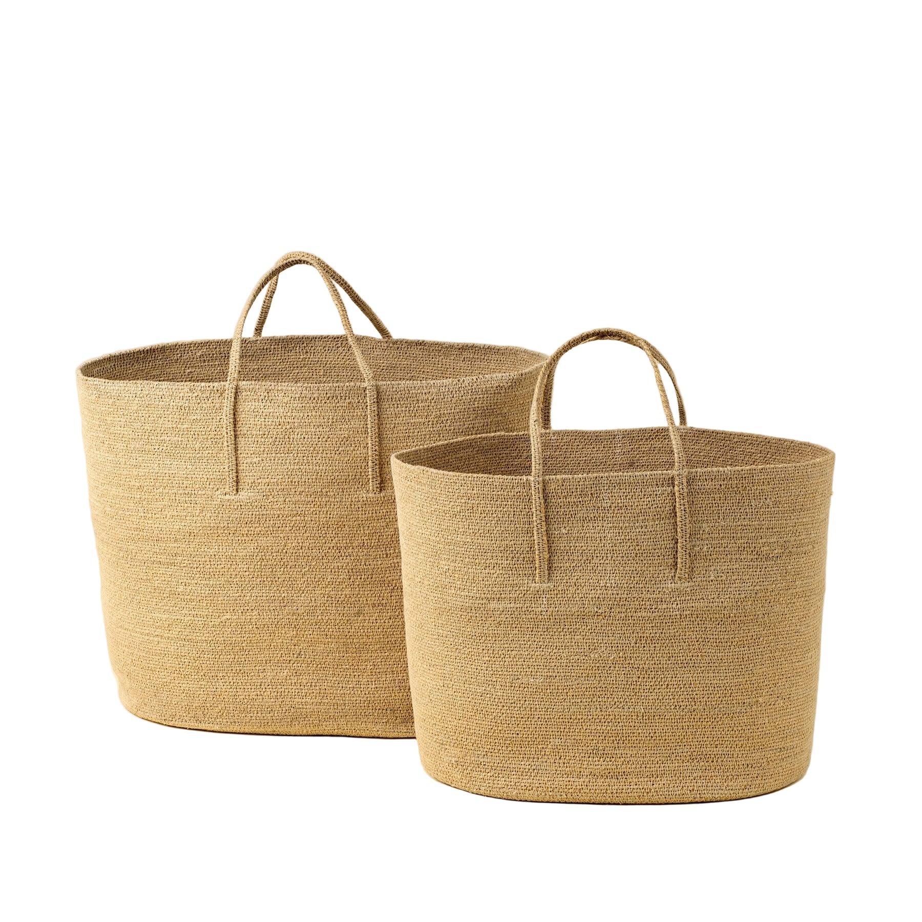 A stylish storage solution that blends beauty and function, the Natura Seagrass Baskets are handcrafted using traditional methods and durable seagrass with visible overstitching. This nesting set of two brings warm, natural texture to any room while offering practical storage for blankets, pillows, or everyday clutter. Artisan-made and grand in scale, they add charm and versatility to your accent decor while embodying sustainable craftsmanship.