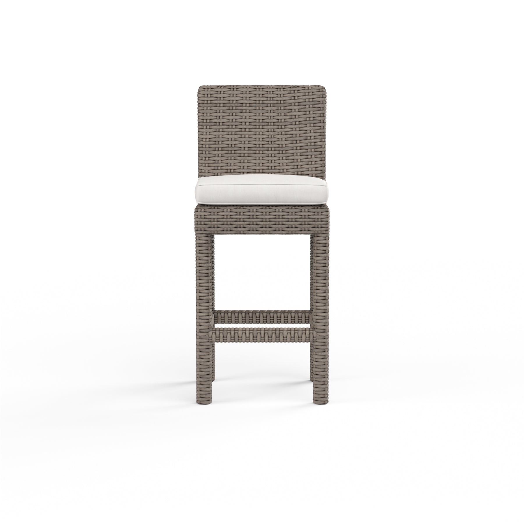 Sunset West's Coronado Barstool embodies casual sophistication for a wonderfully versatile look. Transitional lines are wrapped in a beautiful resin wicker finish in Driftwood. Outstanding comfort is provided with plush, fast drying cushions and generous seating proportions.