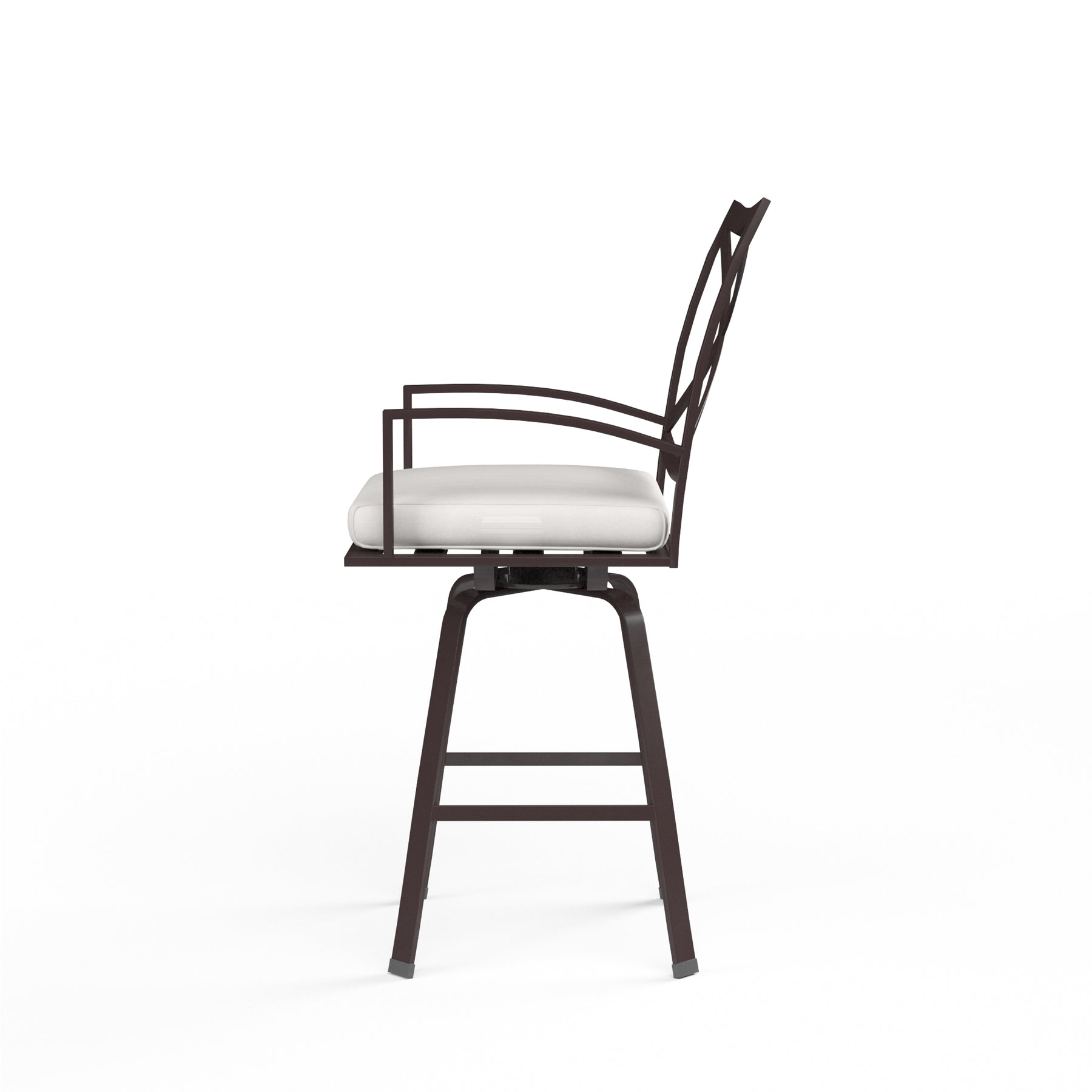 Sunset West's classic La Jolla Counter Stool is rendered in high quality, low-maintenance aluminum that will stand the test of time. This stool features a gently curved X back and seat scaled for comfort, with swivel base and subtly curved arms.