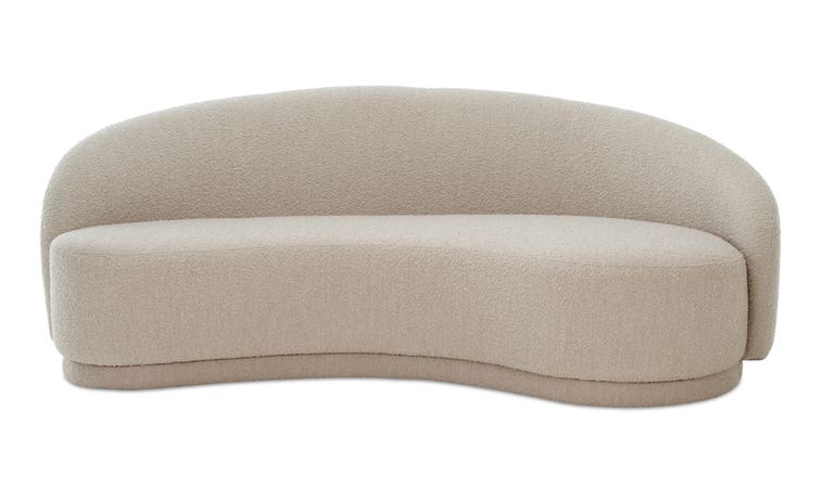A beautiful introduction to boucle, the Excelsior sofa is an exquisite embodiment of serenity and sophistication. Designed to comfortably accommodate four, this generously proportioned sofa features a gracefully curved silhouette that epitomizes effortless elegance. This piece is pure comfort and style, evoking an experience of tranquility and relaxation, redefining the interior landscape with refinement and unparalleled softness.