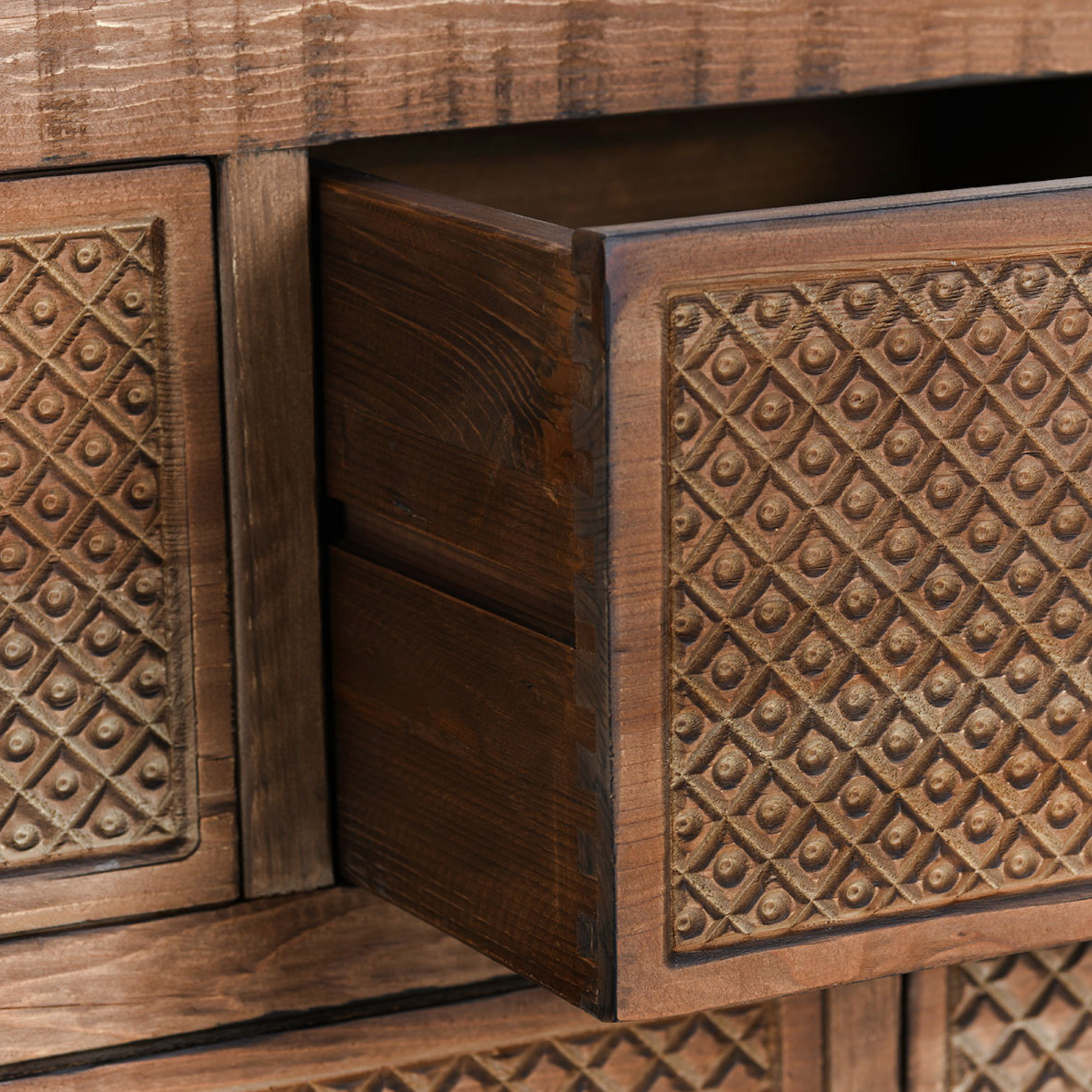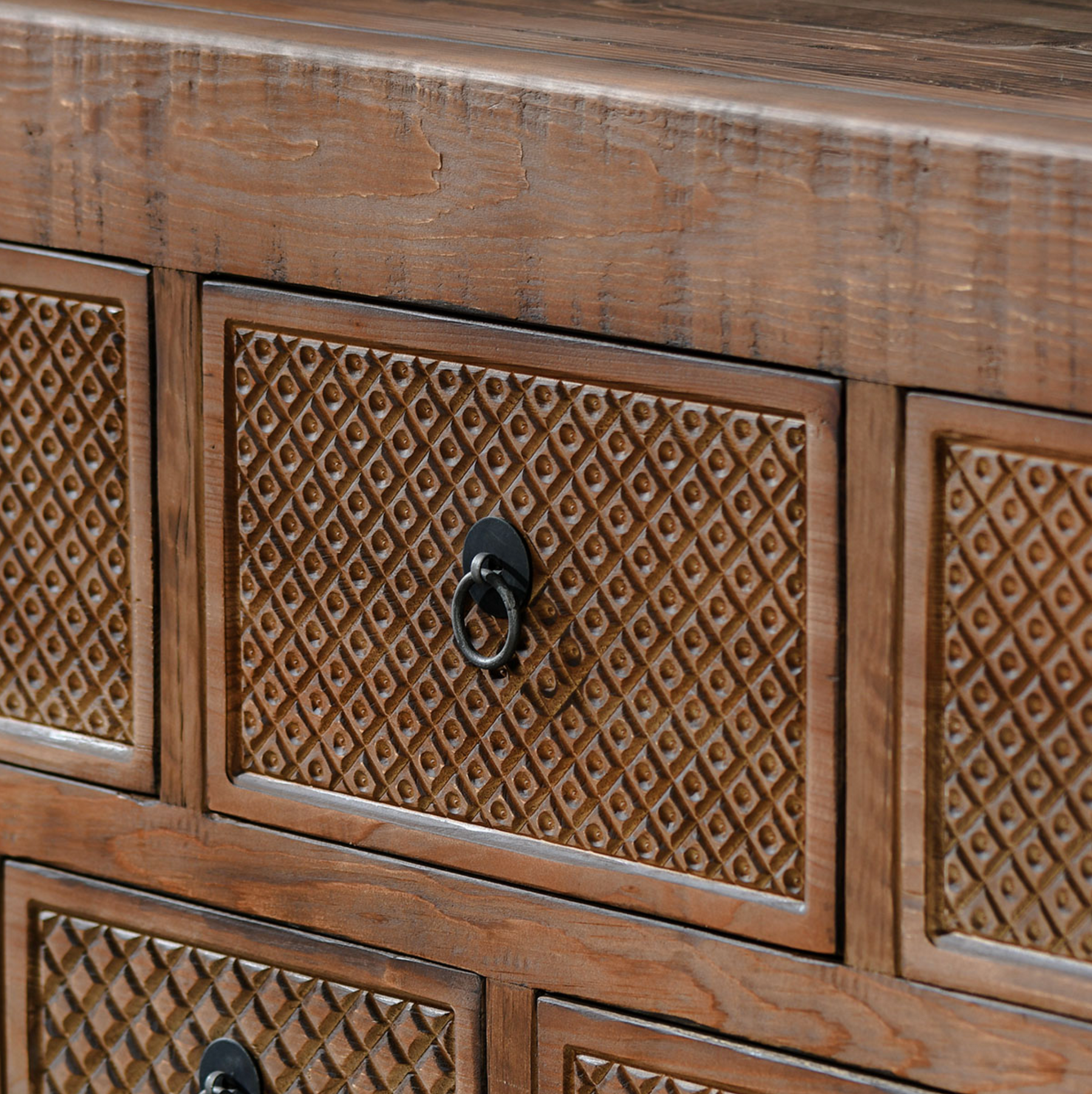 Add a touch of sophistication to your home with the Lahey Reclaimed Pine 11Dwr Console Table. Hand finished and distressed, this console table boasts a solid wood construction for durability and a unique, rustic look. Elevate your décor with this elegant and exclusive piece.