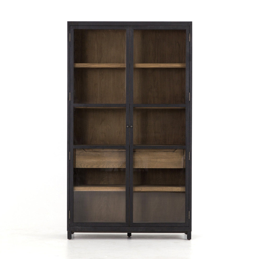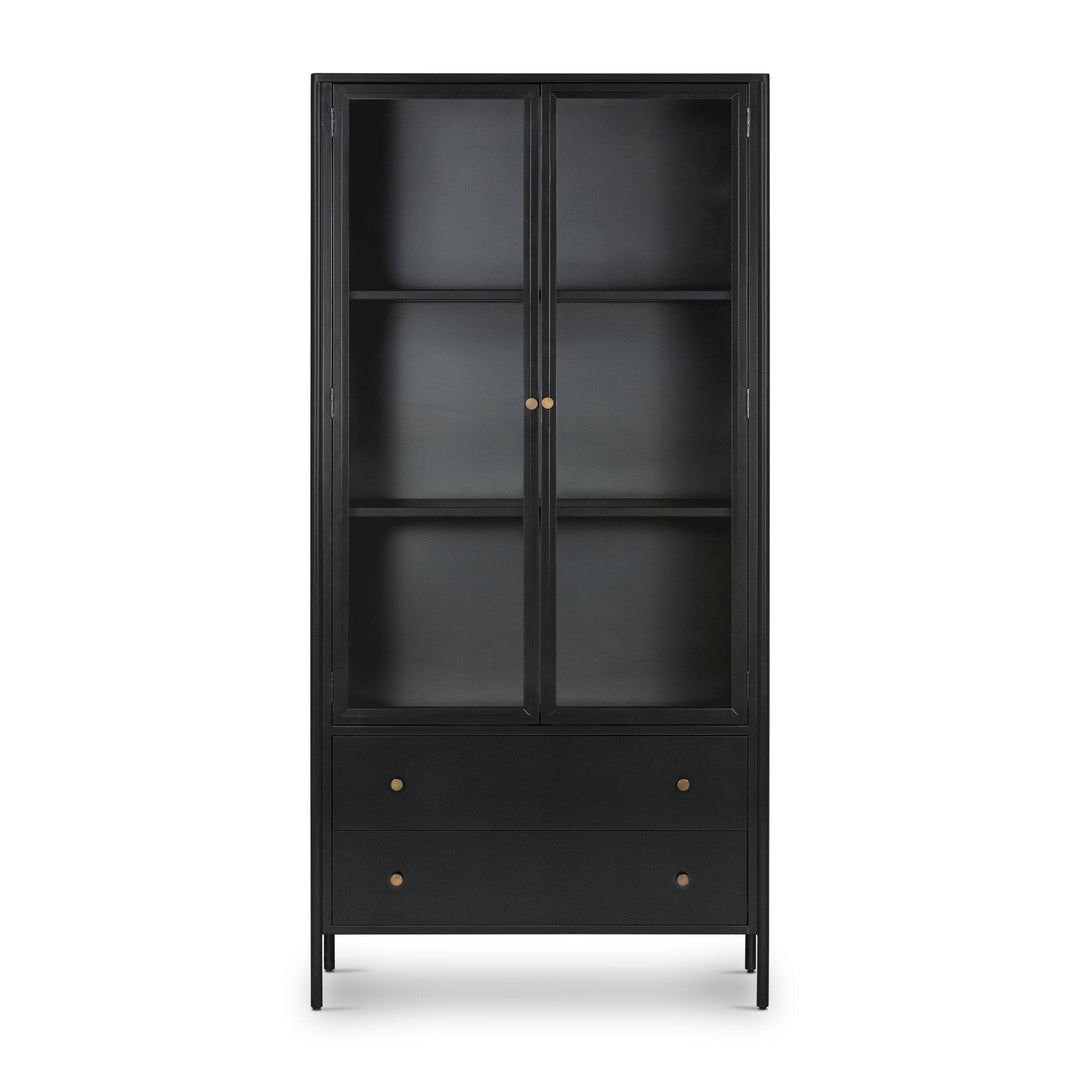 Millie Panel and Glass Door Cabinet - Drifted Matte Black