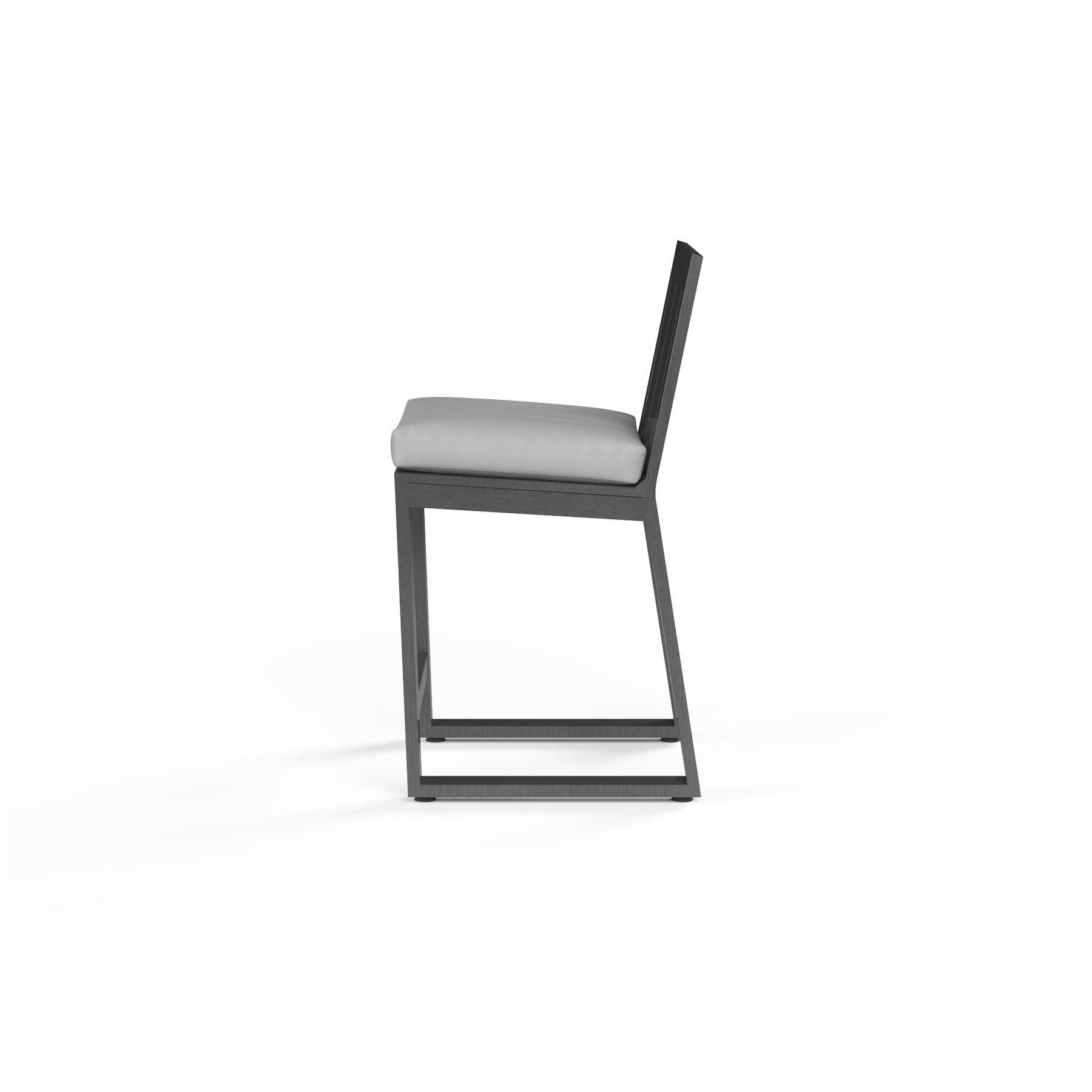 The Redondo Counter Stool blends modern and industrial sensibly into one striking design, featuring a vertical slat back and armless linear frame, crafted in powder coated aluminum with a hand-brushed Slate finish.