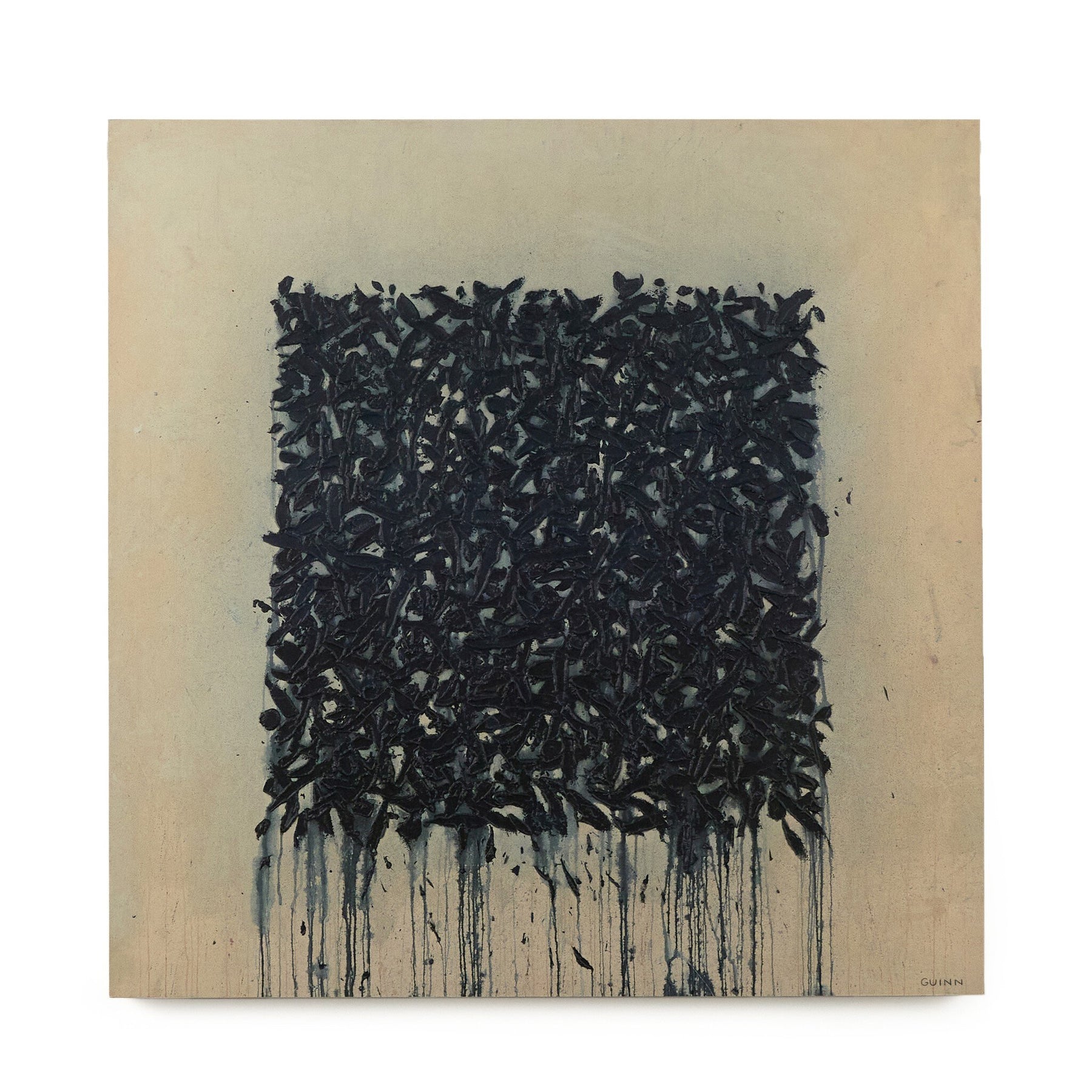 Based in Austin, Texas, abstract-expressionist painter Tyler Guinn looks to texture and organic sensibility to shape his wide variety of works, from geometric pieces and flowing landscapes to mark making and automatic writing. If not currently in stock, this texture-enhanced piece ships within three weeks. Handmade in Austin, Texas.