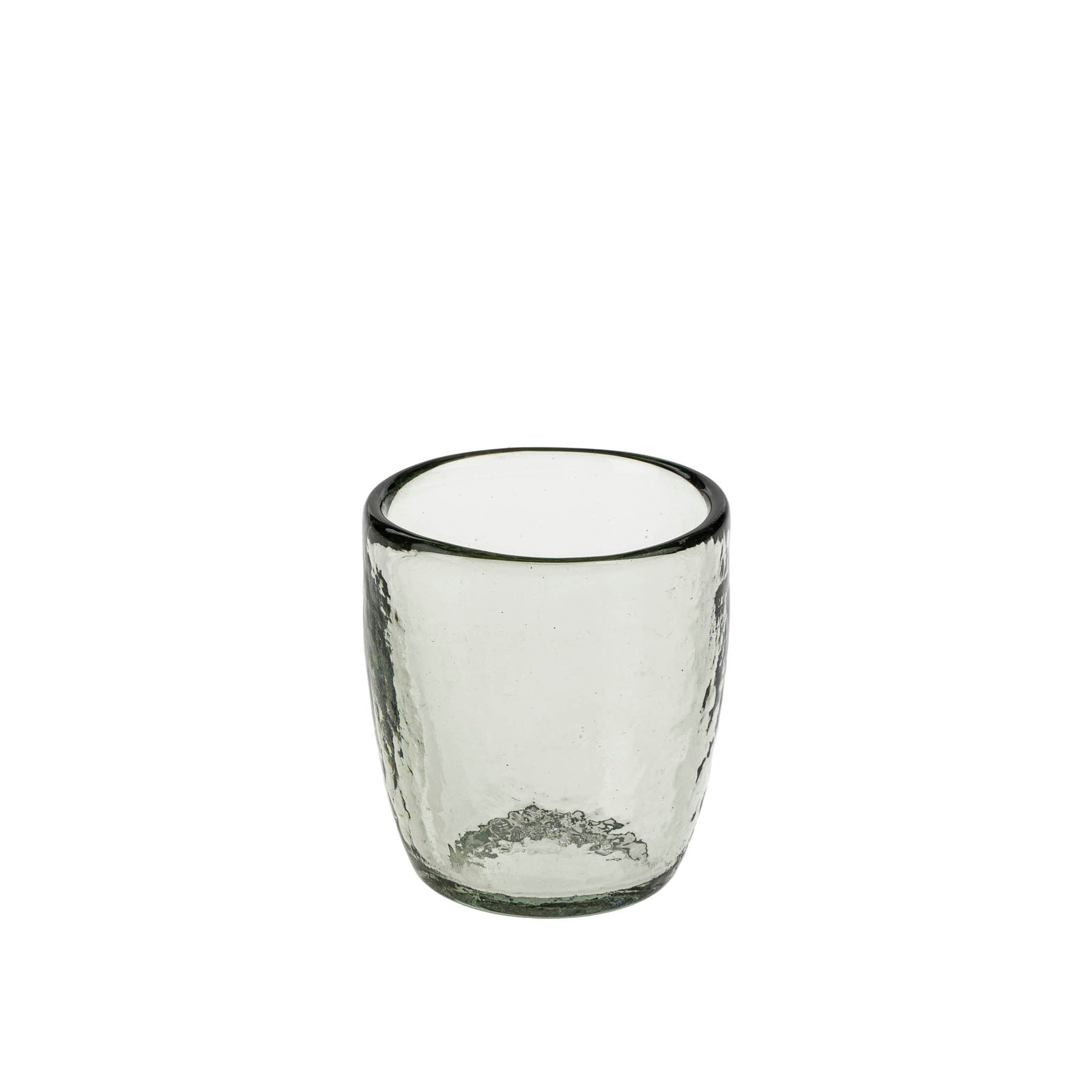 The watery toned Hammered Glass Bud Vase comes to life with the addition of a single bloom and multitasks as a votive when styled with a tealight. Crafted from fully mouth blown recycled glass, a traditional method of glassmaking which has been used by Indian artisans for centuries, each characterful vessel will be unique.