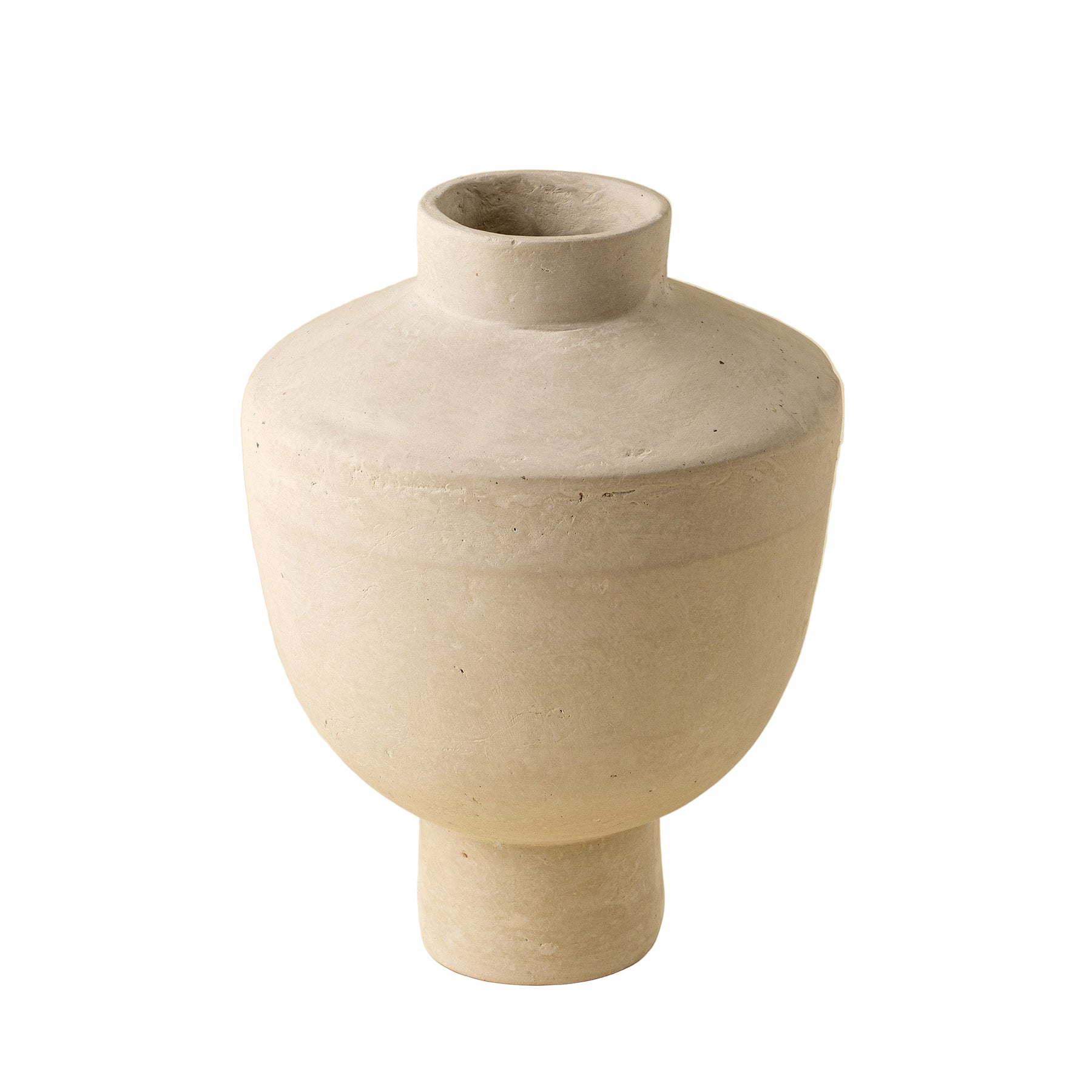Elevate your accent decor with the clean, architectural lines of the Lena Paper Mache Vase. Handcrafted in India using traditional techniques and recycled newspaper, this tall decorative vase features a creamy matte finish and a pedestal-style base that gives it presence and poise. Its crisp edges and sculptural silhouette create a striking contrast against softer, organic elements, adding modern balance to your space.