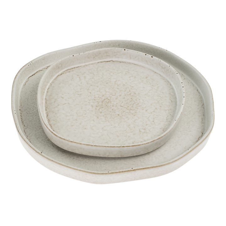 Inspired by the soothing energy of natural stones and pebbles, the handcrafted Pebble Serving Plates are wabi-sabi in form. Organically shaped with reactive glaze, each piece is unique. Microwave/Dishwasher Safe.