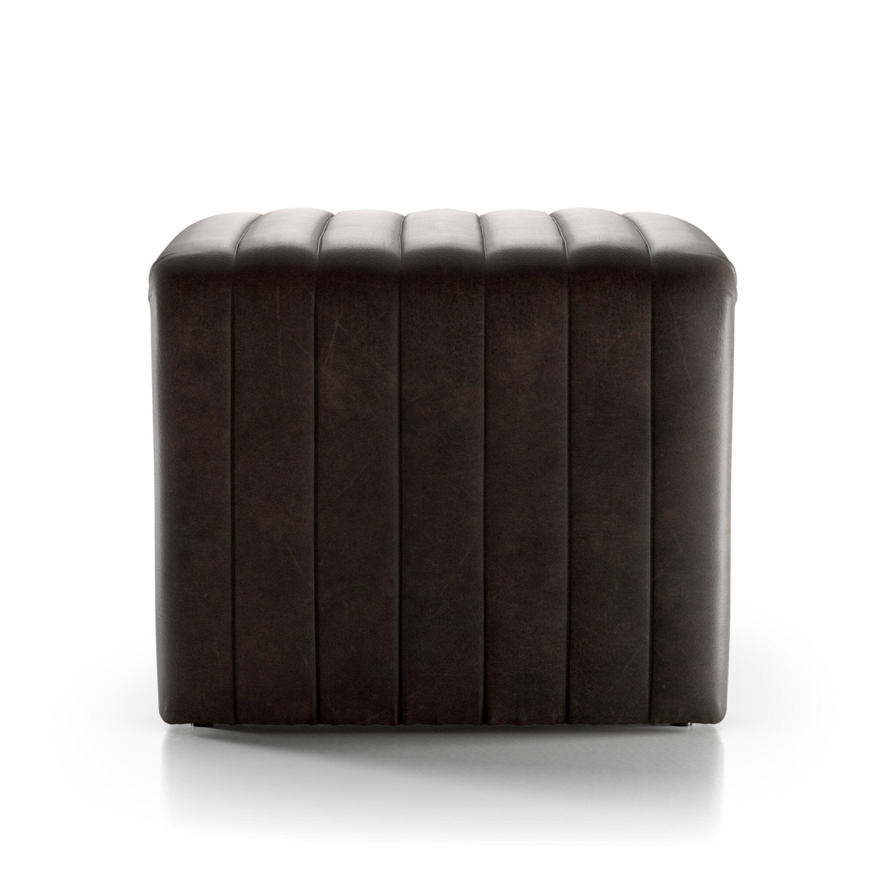 Layer in an extra surface or added seating by way of a top-grain leather ottoman in a rich deep brown, with dramatic channeling for great texture.