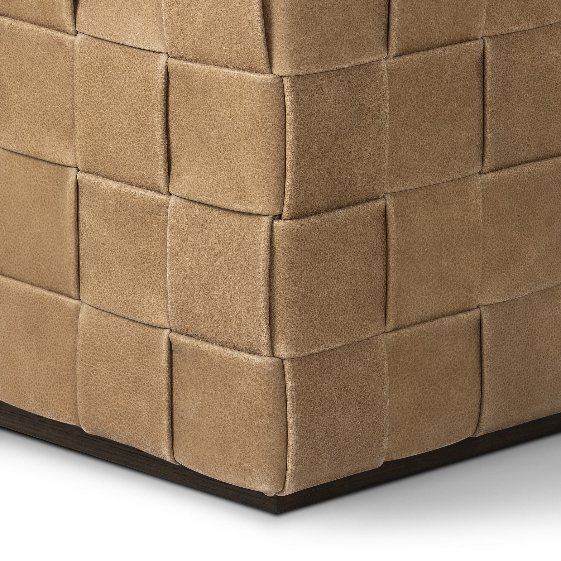 Soft, specialized top-grain leather is hand-woven, crafting a look of a treasured vintage find. Use as bonus seating or style with a tray for an extra surface.