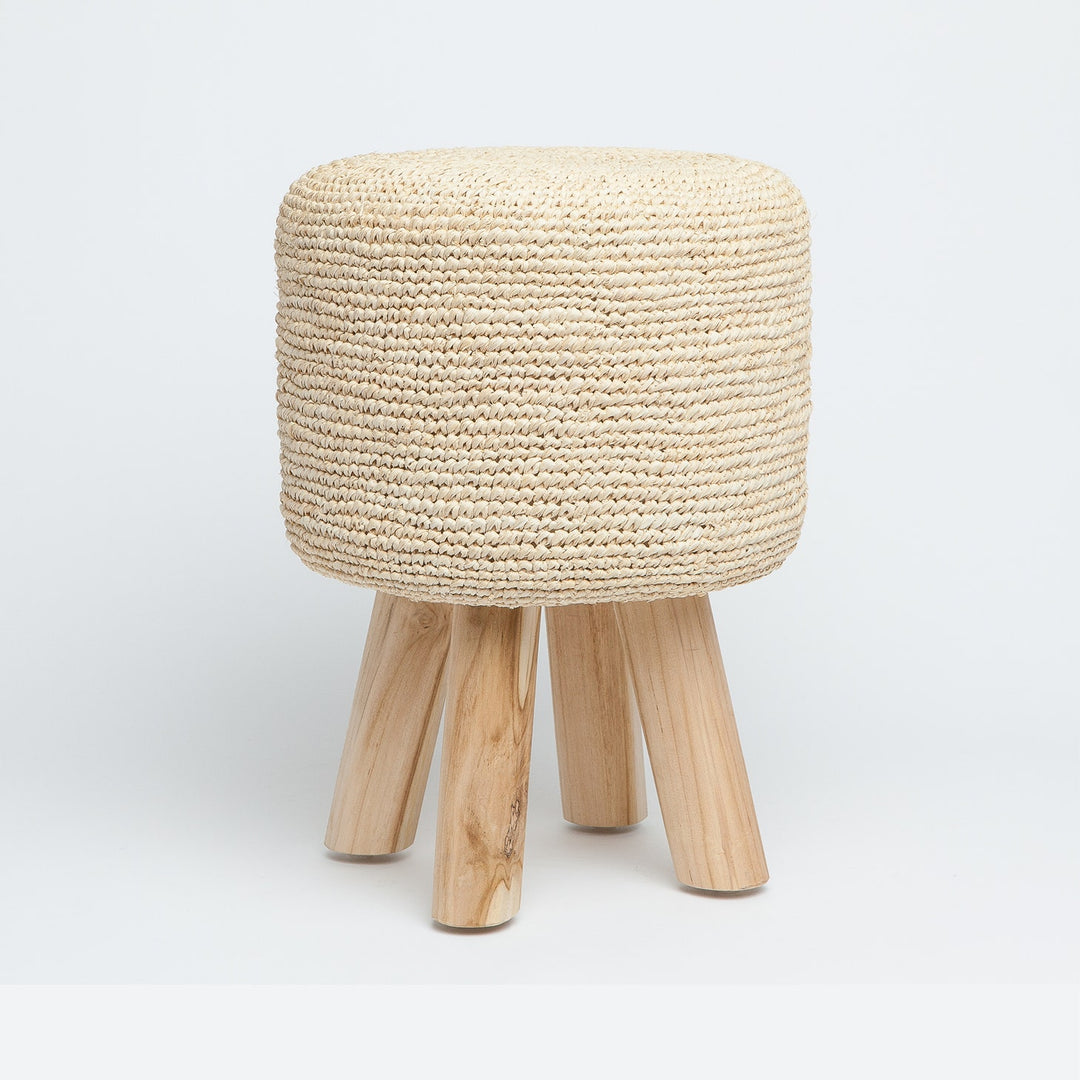 The Kailua Stool is a dainty little ottoman. This petite piece is composed of a cushy, round, raffia pillow top and bleach teak legs with a rounded shape. The raffia is a natural chalky white colour adding a sweet but sassy touch to your space. Available in two sizes to suit your room.