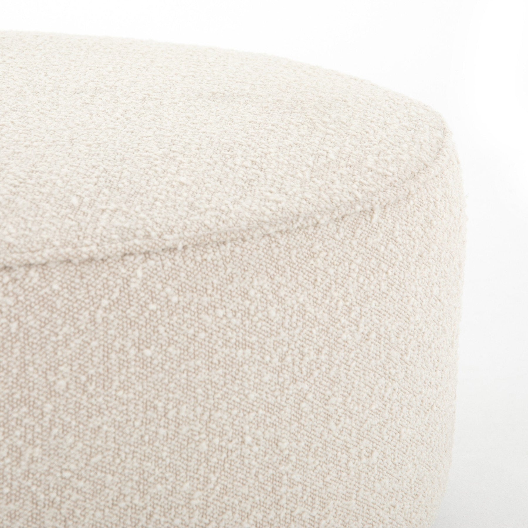 This wide, round ottoman of textural cream boucle can be placed just about anywhere, bringing with it a retro vibe. Style with a tray as a design-forward coffee table.