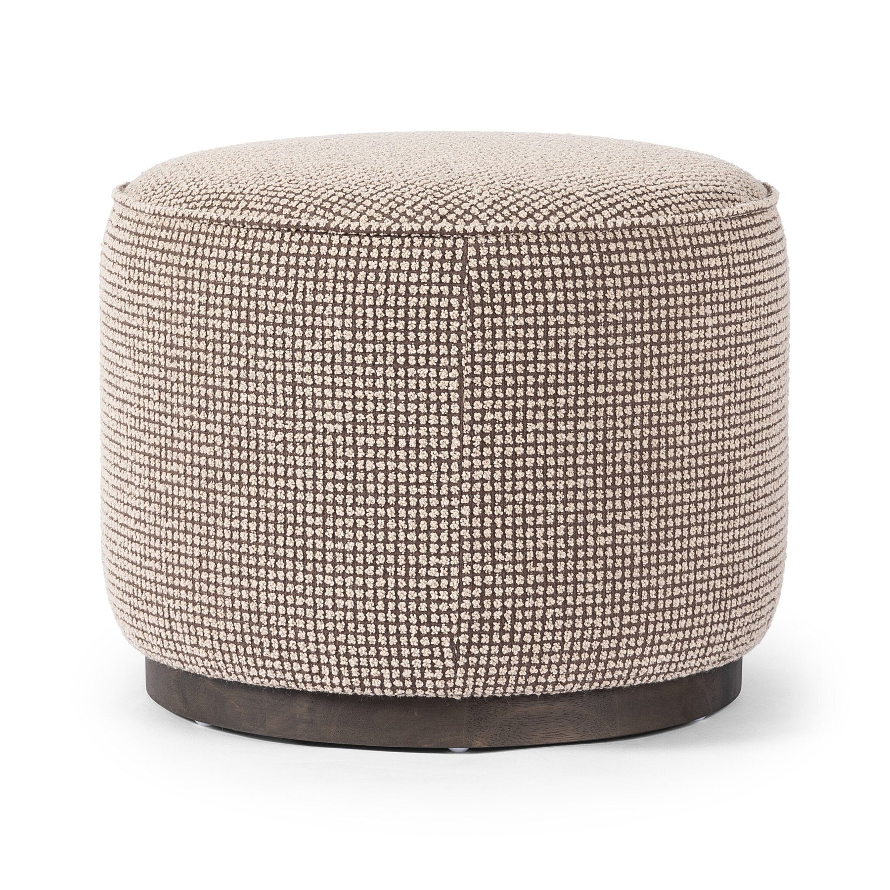 This round ottoman of textural upholstery can be placed just about anywhere, bringing with it a hip retro vibe.