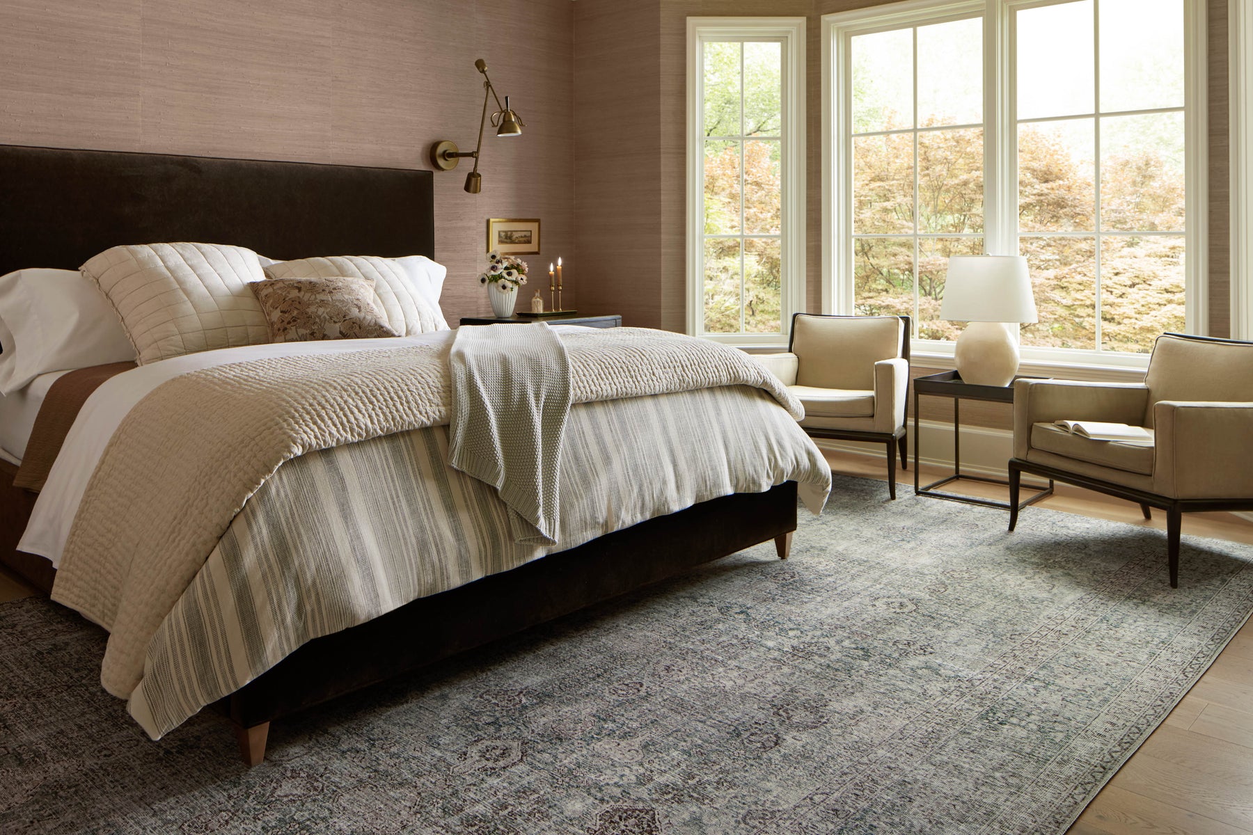 Highly durable and smooth underfoot, the Jules Collection captures the classic spirit of the Chris Loves Julia x Loloi rug collaboration. Power-loomed of 100% polyester pile in China, each Jules piece is printed using advanced rug-making techniques, offering a beautiful vintage look. Plus, the low pile is easy to vacuum and will never shed—ideal for your busiest rooms. SPECS: -Pile Height: 0.13 -Fiber: 100% Polyester Pile -Construction: Power Loomed -Country of Origin: China -Care: Clean spills immediately by blotting with a clean, dry sponge or cloth. Appropriate rug pad is highly recommended on all surfaces to prevent slipping, add cushion, and improve durability. For vacuuming, use a vacuum cleaner without a beater bar or one where you can set the bar to the highest pile setting. If your vacuum has variable power settings, set on low. Vacuum full length of the rug, turn and repeat to the next area, rather than back and forth motion.