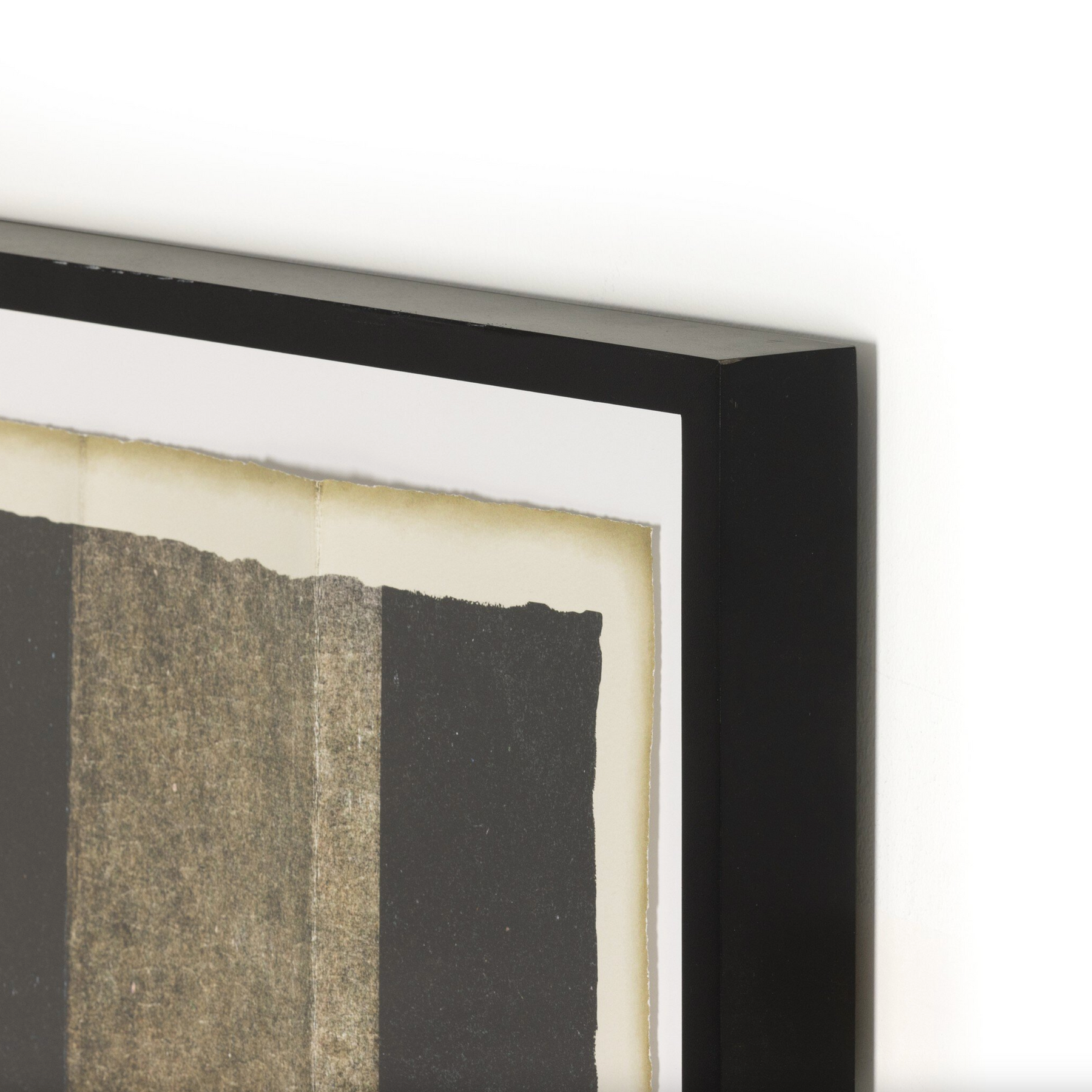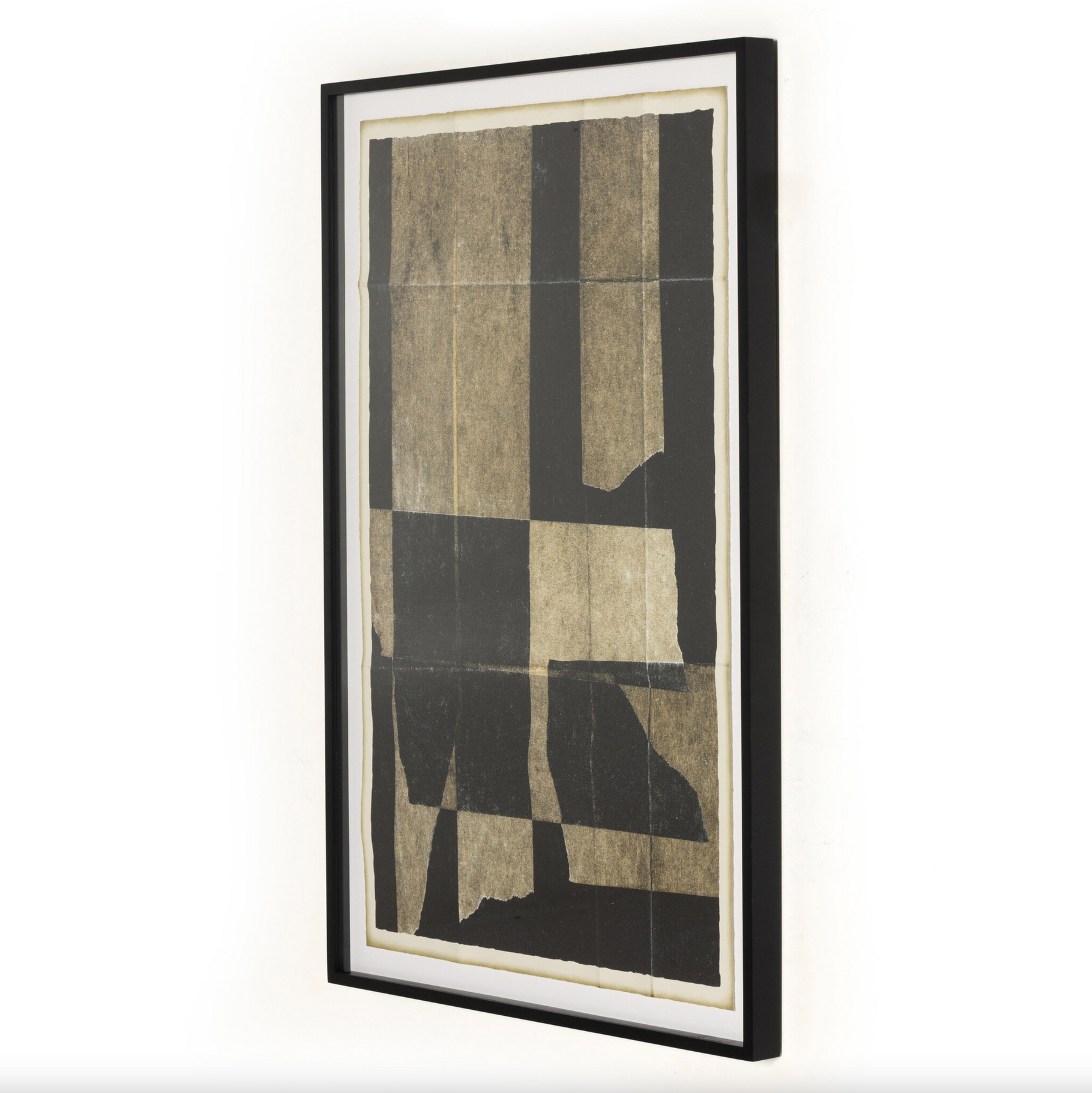 Digitally manipulated crease lines upon a bold collage accented by a rough border and distressed finish that complement the structural design and offer distinct character. Hang horizontally or vertically for ultimate versatility. If not currently in stock, this texture-enhanced piece ships within three weeks. Handmade in Austin, Texas.