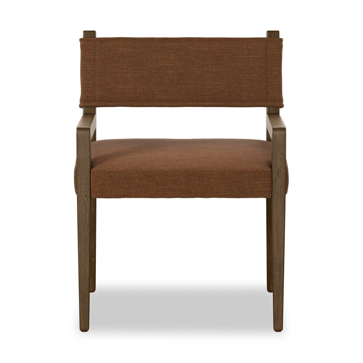 Mixed materials at their finest. Ferris Dining Chairs feature Brown parawood or Black Oak frame that forms a slight, simple structure for squared seating and available in a variety of finishes and fabrics.