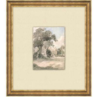 The Gentle Glade art print is a luxurious piece featuring a giclee-on-watercolor paper medium that has been deckled, floated on mat, and finished with a dazzling gold leaf deckled edge. At 16" by 18", this exclusive artwork offers a tasteful visual to enhance any décor.