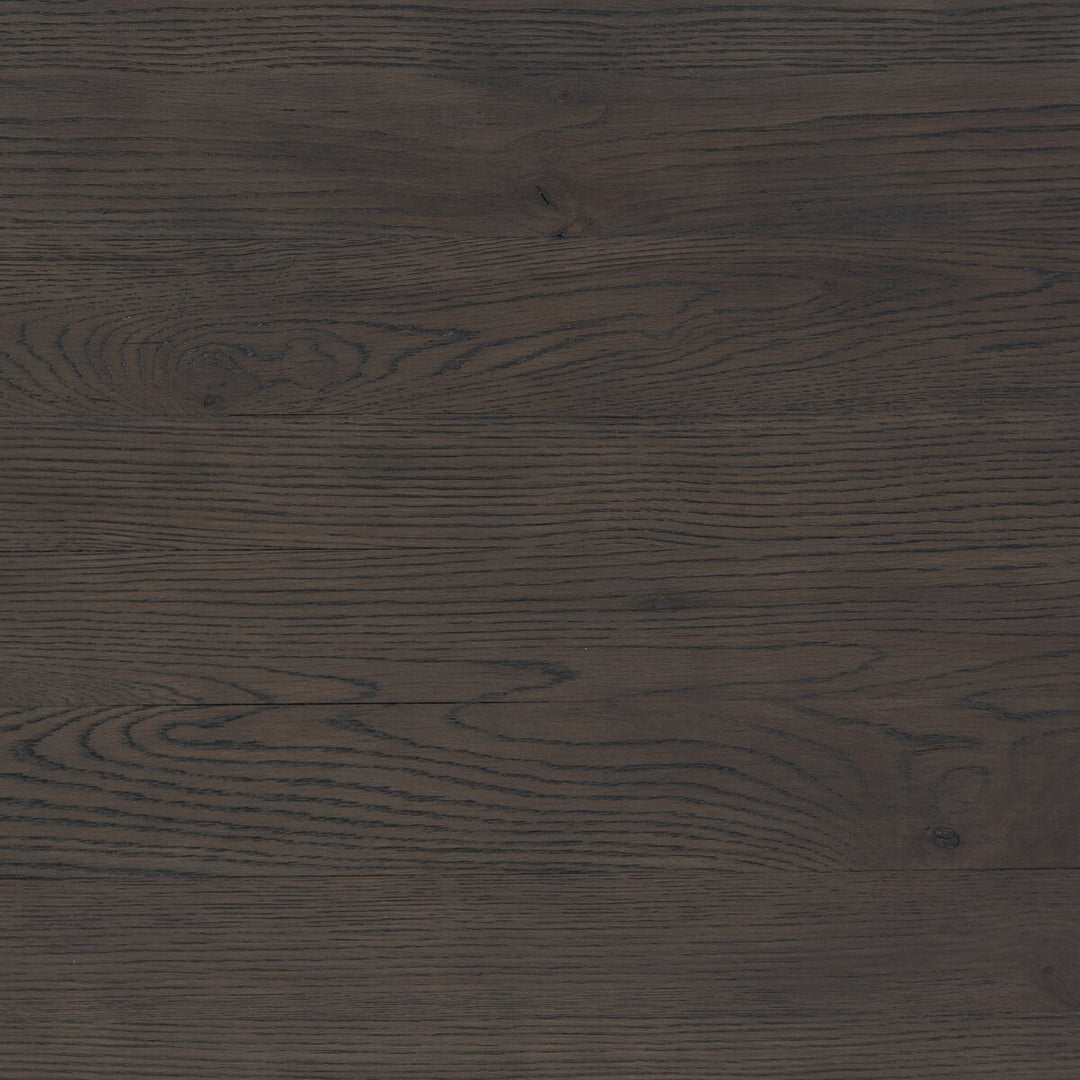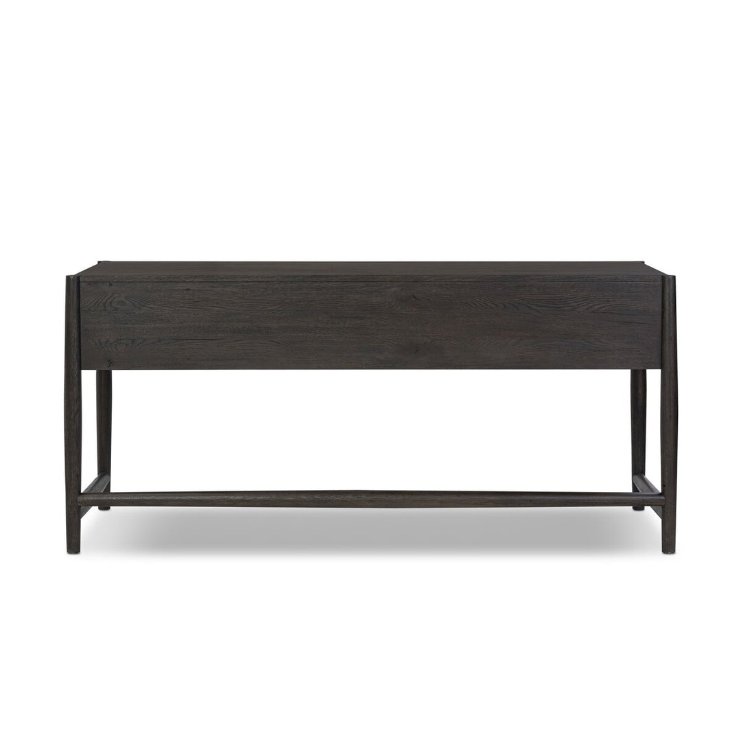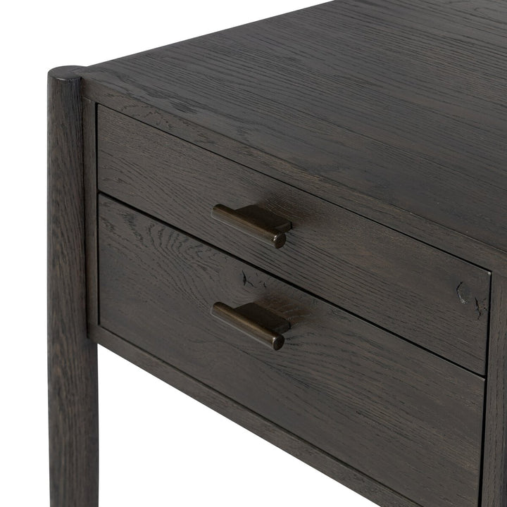 Traditional, reimagined. Bring ample surface and storage space to your workspace with a desk of smoked black oak. Simple hardware is finished in an aged bronze.