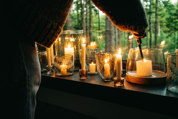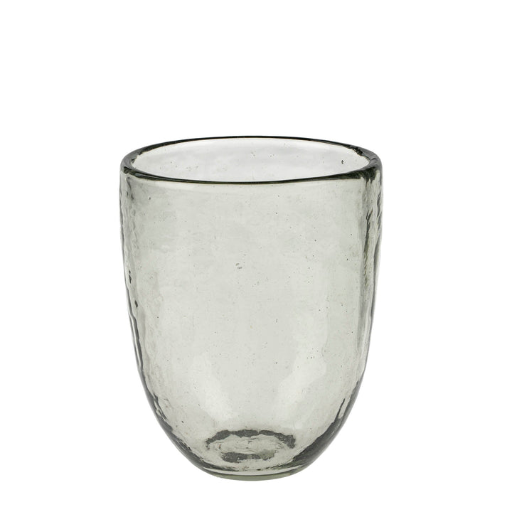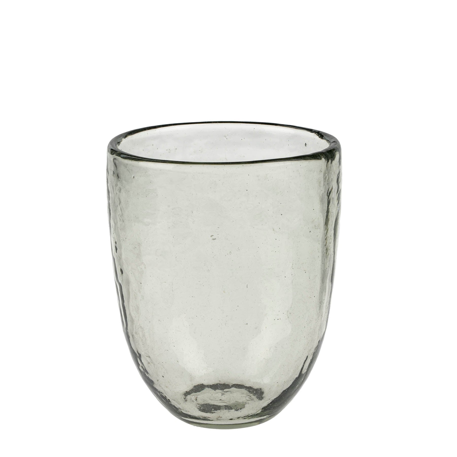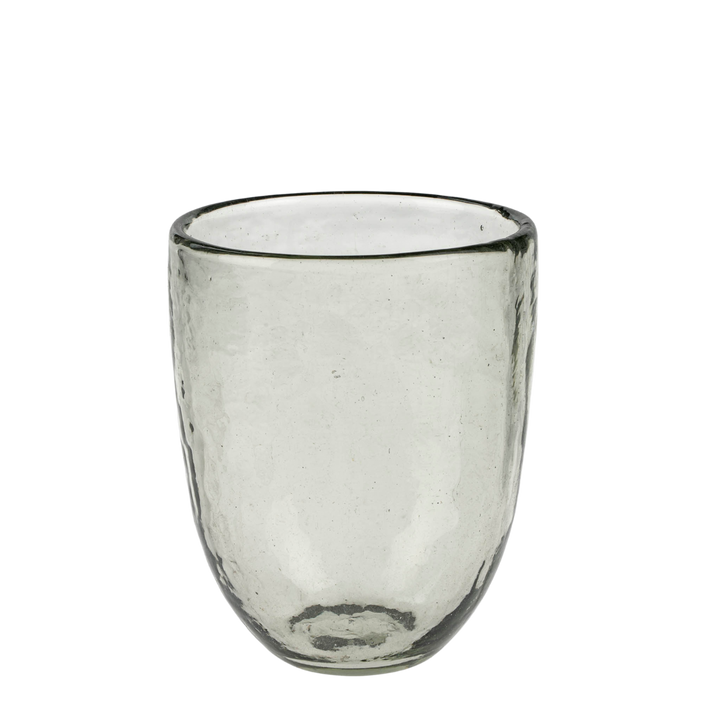 The watery toned Hammered Glass Vase comes to life with the addition of fresh blooms and adds a touch of warmth and romance when styled with a pillar candle. Crafted from fully mouth blown recycled glass, a traditional method of glassmaking which has been used by Indian artisans for centuries, each characterful vessel will be unique.