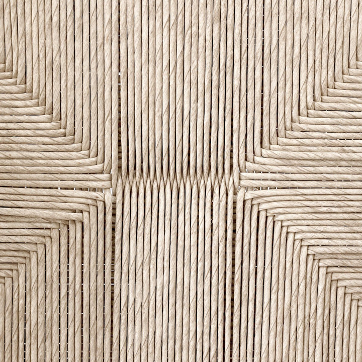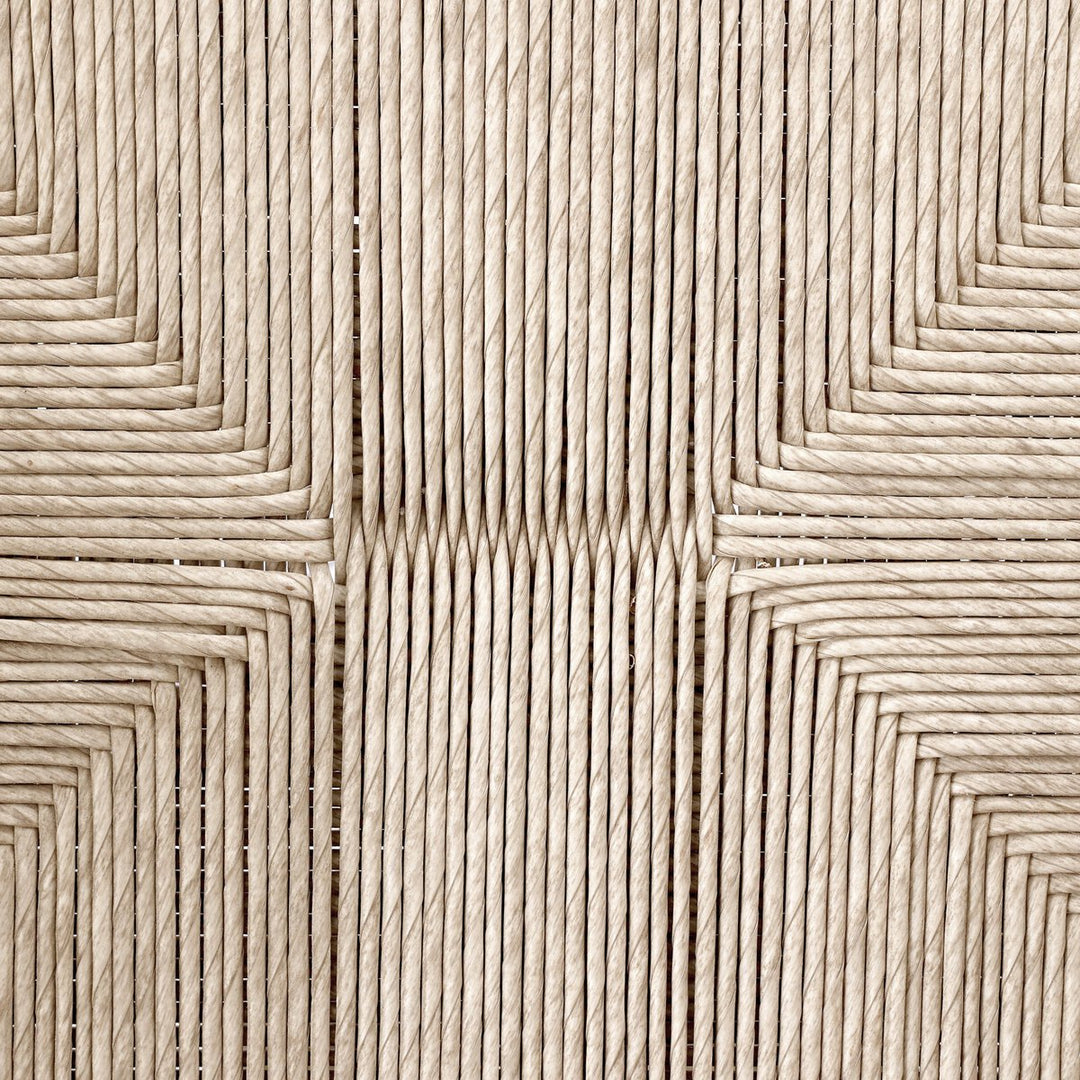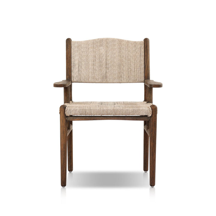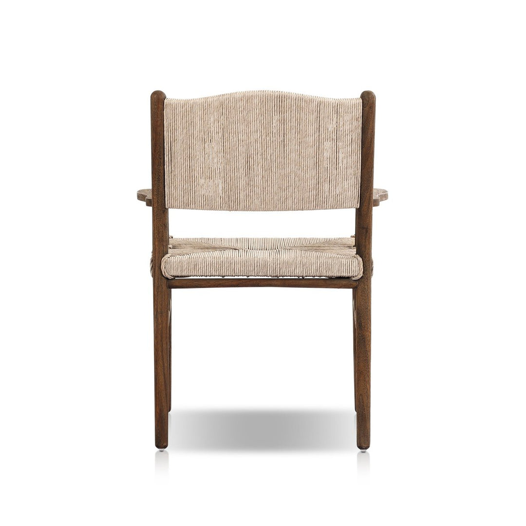 Shaker inspiration. Saddle brown wood frames the woven seat and back of this outdoor dining armchair. Cover or store indoors during inclement weather and when not in use.