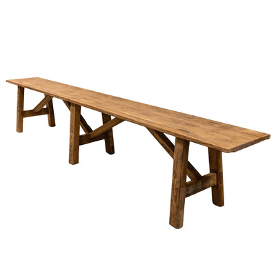 This Primitive Extra Long Vintage Bench is handcrafted with reclaimed elm doors, adding a unique rustic flavor to your modern home. Its minimalist yet robust design is made with recycled architectural salvage and provides a unique character to any room. The finish and tone will vary.