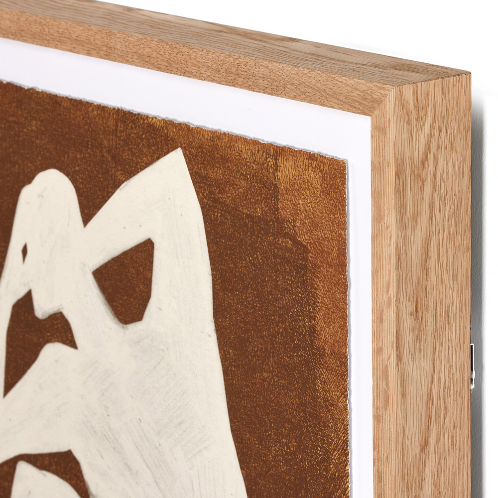 An abstract figural capsule, reminiscent of traditional block printmaking methods and accented by a textural frame, from Bangkok-based art house Coup D'Esprit. Handmade in Austin, Texas.