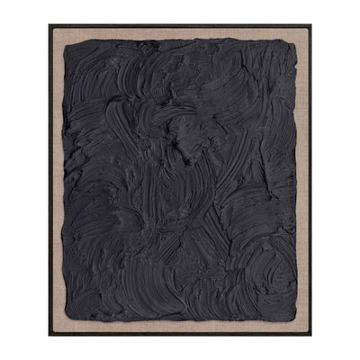 The unique depth and activity in either the white or the black of these incredible works will be sure to stimulate conversation. The canvas is embellished with a hand-applied impasto treatment and finished in a floater frame.