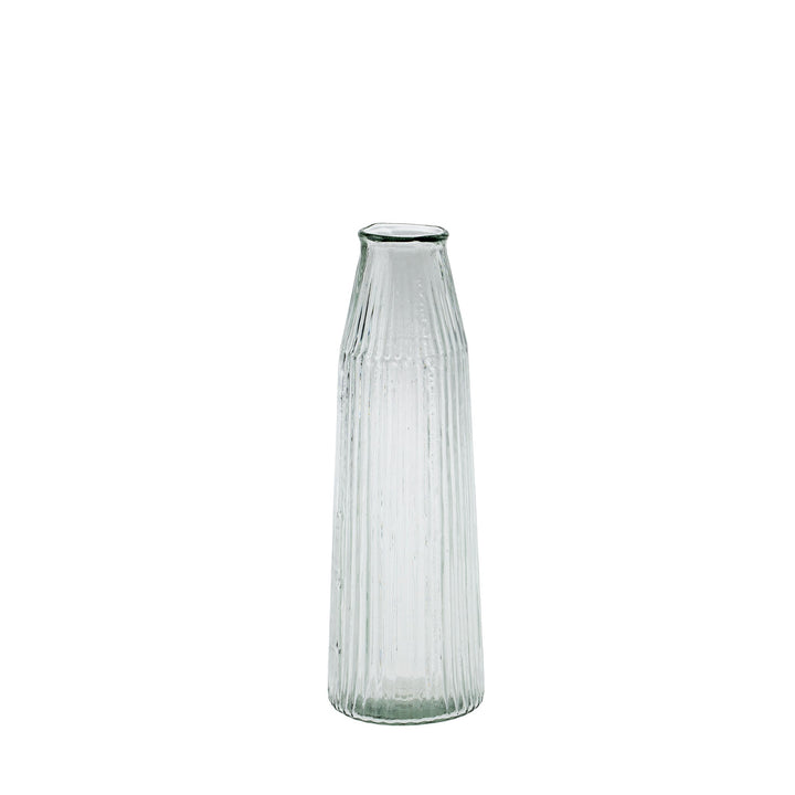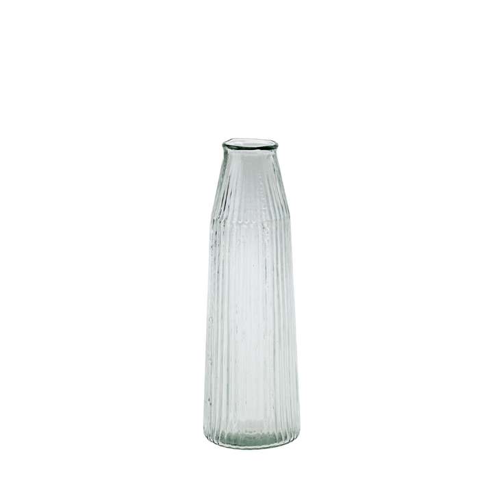Elevate your space with the our Ribbed Glass Vase, meticulously hand-blown from recycled glass. Each vase features a vertical ribbed pattern, adding an elegant texture that beautifully catches the light. Due to the artisanal process, variations in shape and design ensure that every piece is truly unique. Perfect for showcasing single stems or small bouquets, these vases effortlessly combine sustainability with style, bringing a touch of understated luxury to any setting.